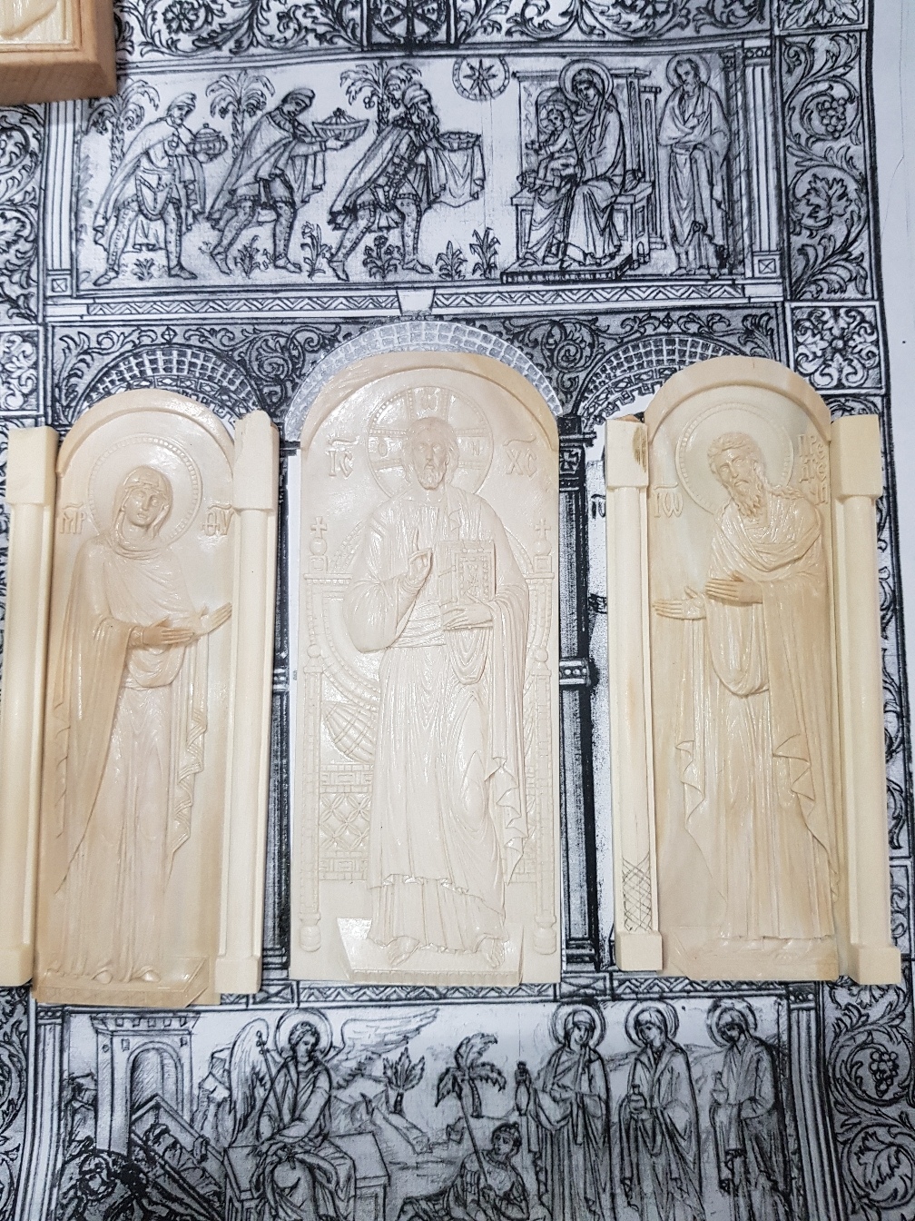 К нам в Ростов приезжал замечательный человек, художник-скульптор, миниатюрист, Олег Широков. Он работает над окладом на наше напрестольное Евангелие, которое, как многие помнят, у нас будет рукописным. По ходу встречи, выяснили, что Олег является автором большинства барильефов на новых колоколах Кафедрального собора Рождества Пресвятой Богородицы. Как всё тесно! Просим молитв.