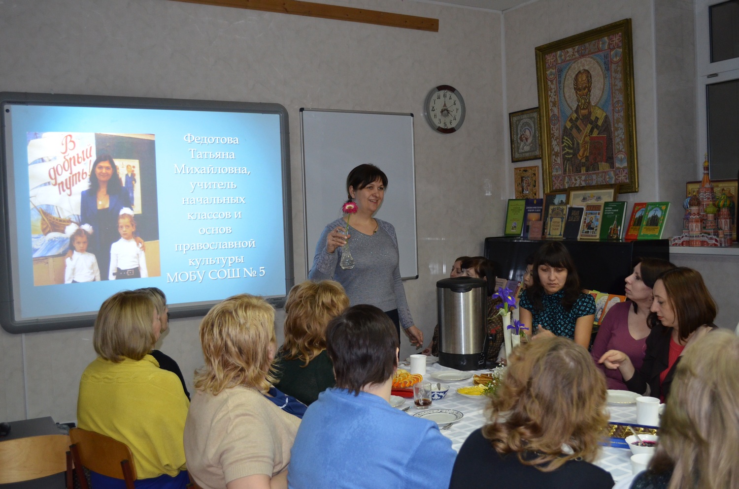 Татьяна Михайловна поделилась с коллегами своим многолетним опытом преподавания Основ православной культуры, рассказала о проблемах, с которыми сталкивается в процессе преподавания.