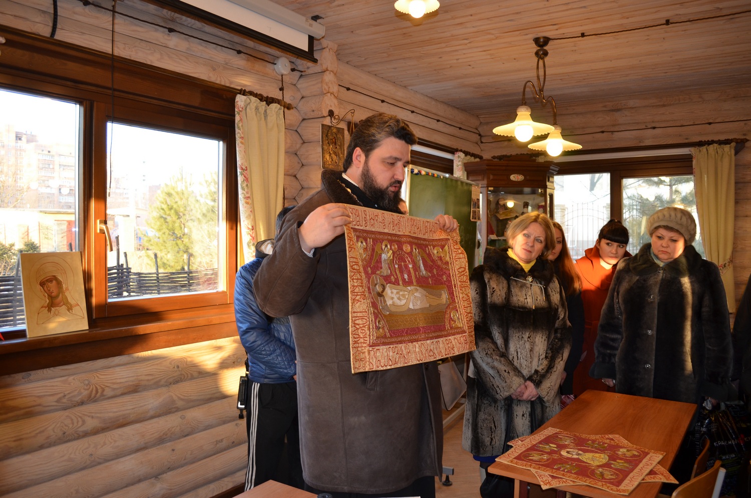 По окончании для всех учителей протоиерей Валерий Волощук провёл экскурсию по мастерским прихода: иконописной и золотошвейной.