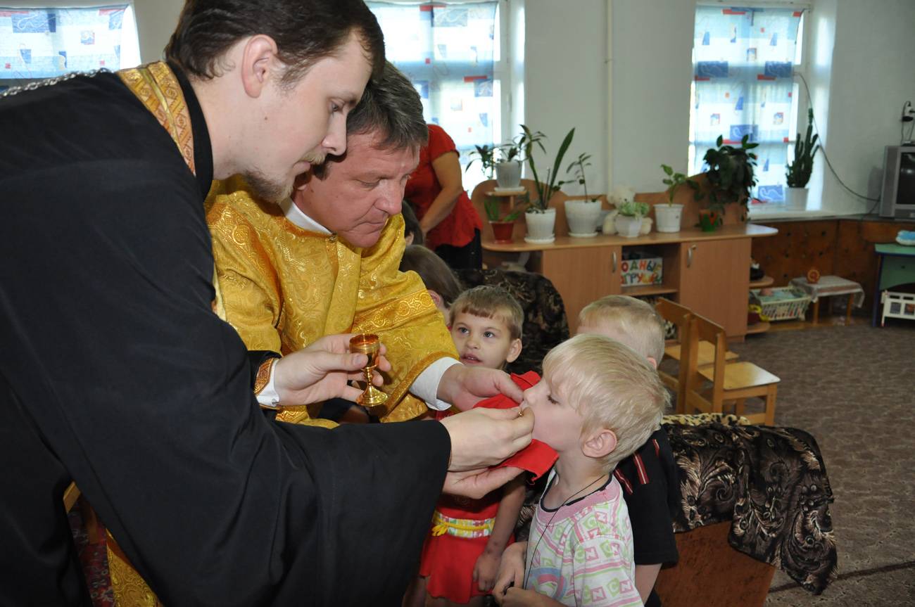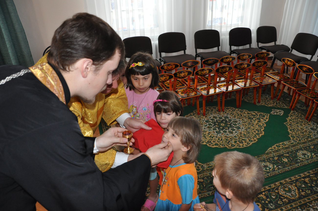 20 июля 2012 года клирик прихода святого Георгия Победоносца иерей Роман Зимин совершил Таинство Причастия детей в коррекционном детском доме «Аревик» пос. Чалтырь.