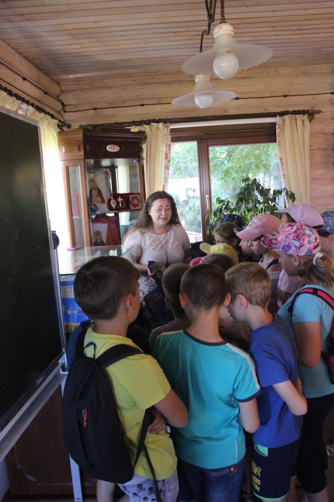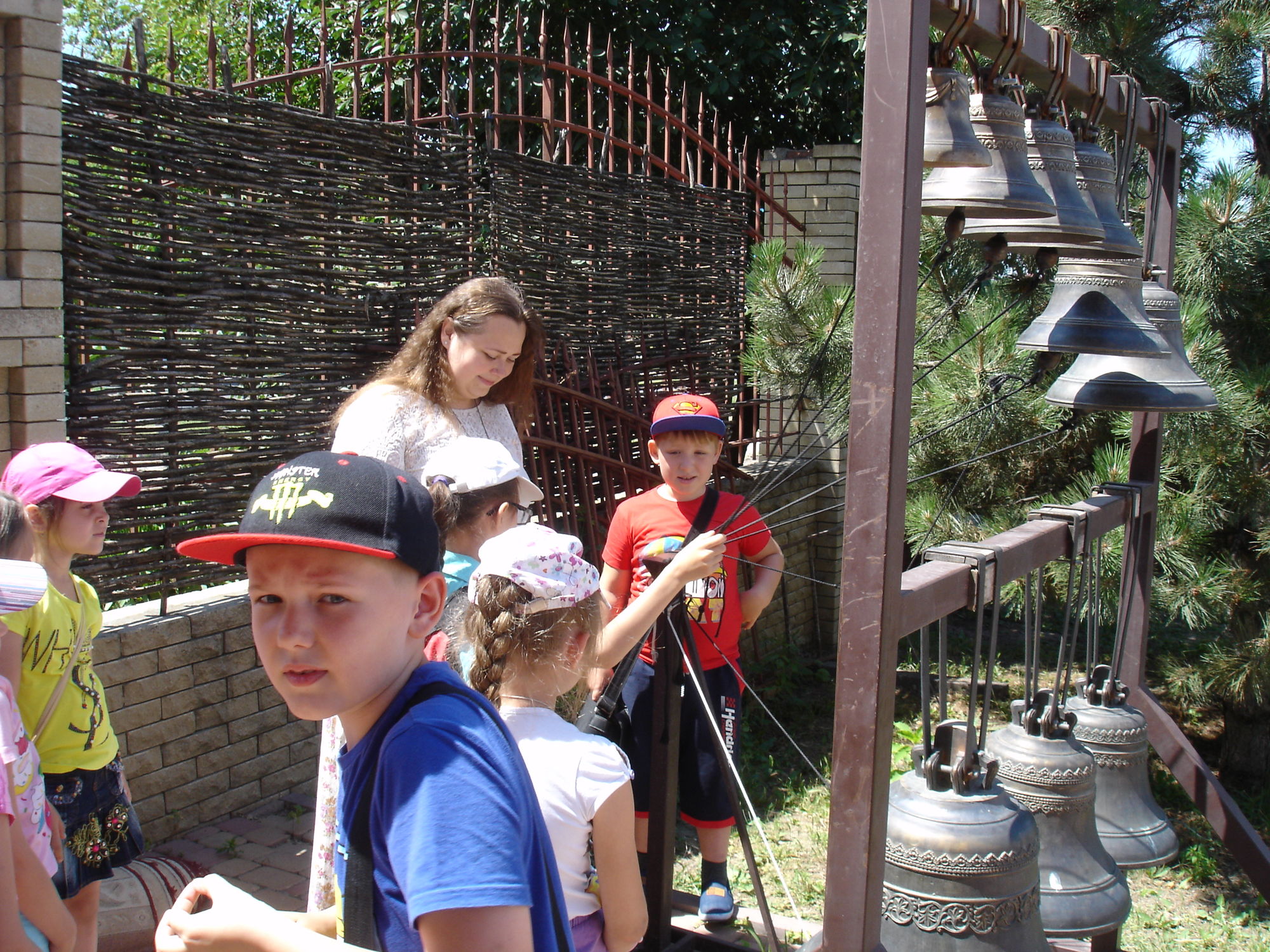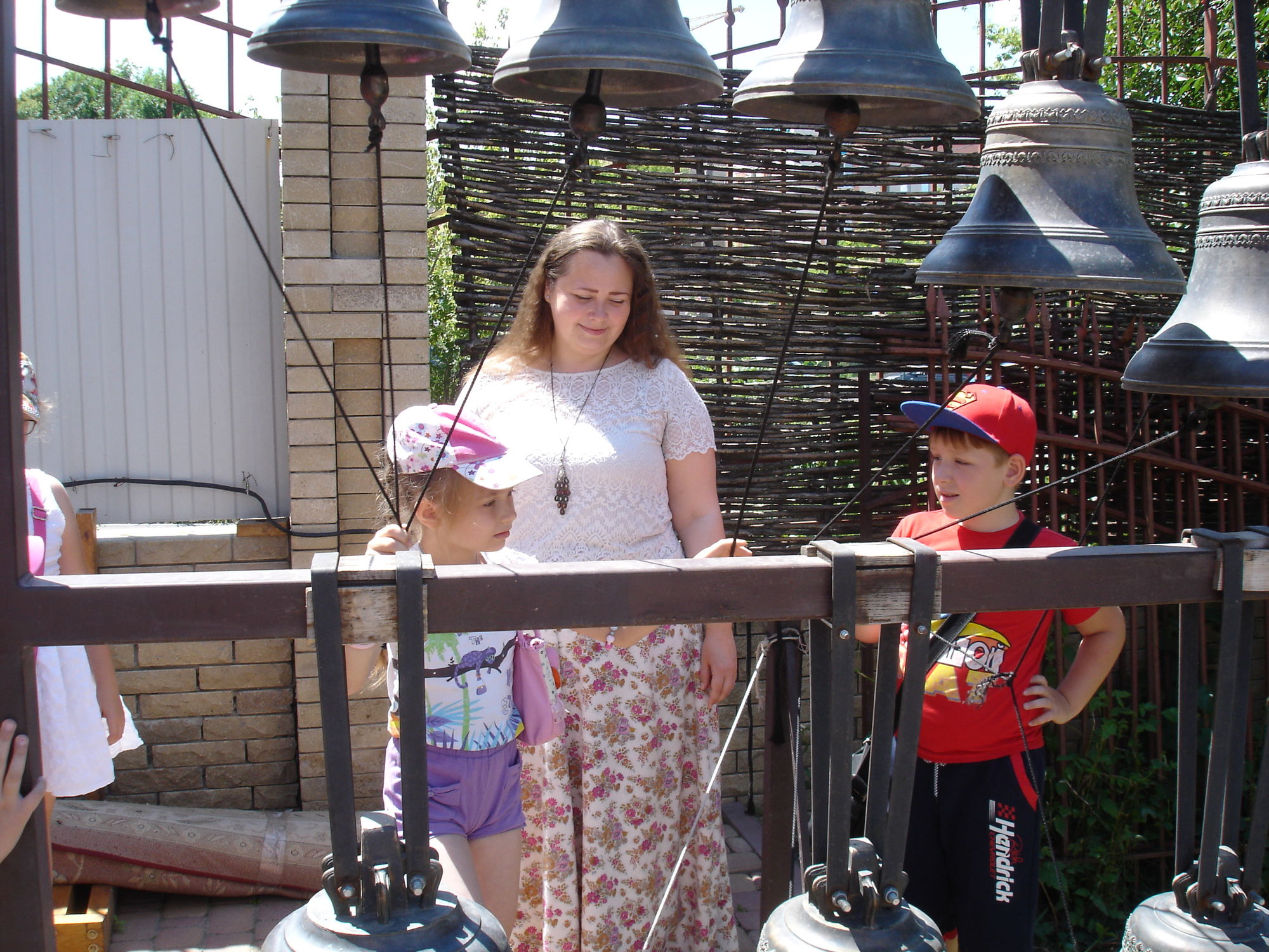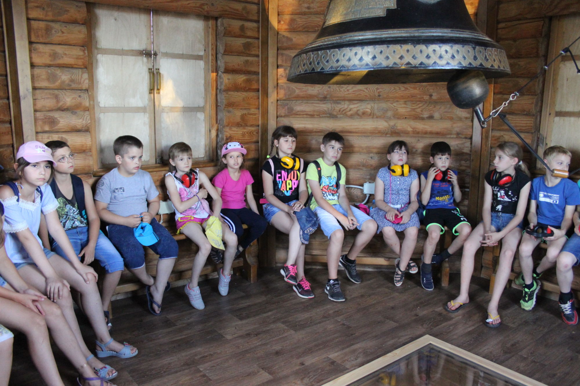 Во второй части экскурсии, золотошвейка Ольга Шевчук познакомила ребят с деятельностью приходских творческий мастерских: золотошвейной, иконописной, традиционной тряпичной куклы, росписи по ткани в технике батика и провела мастер-класс по колокольному звону.