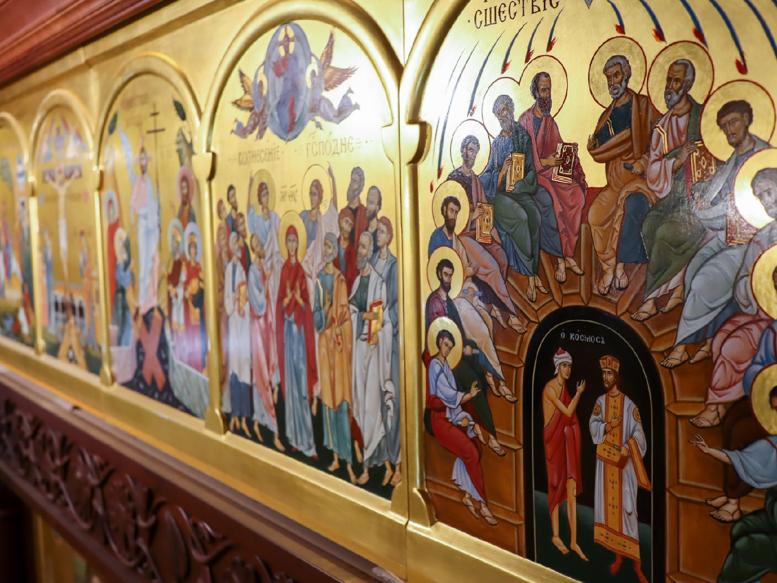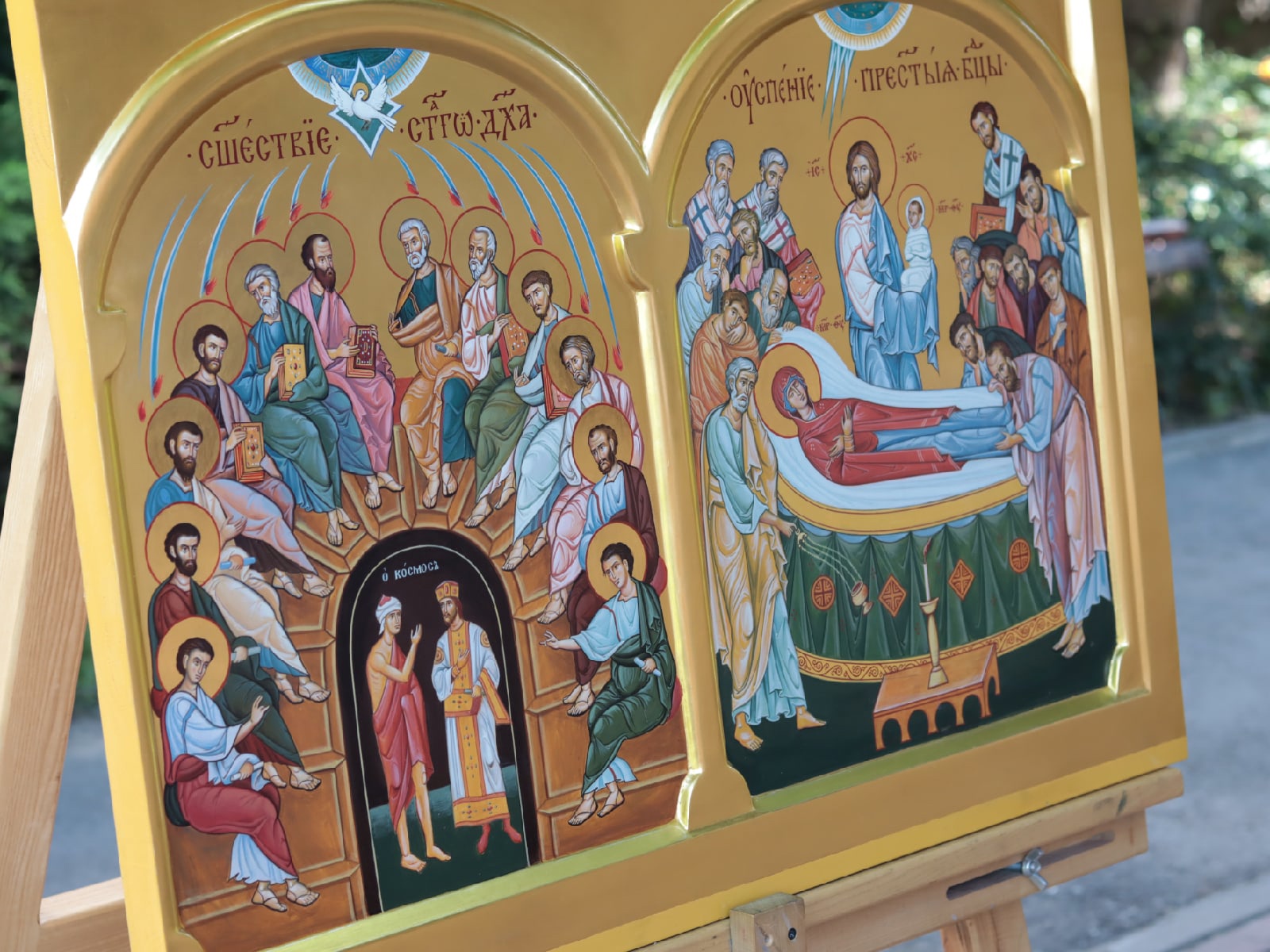 Ко дню Святой Троицы завершилась работа над иконостасом храма Сорока Севастийских мучеников: написаны последние иконы «Сошествие Святого Духа» и «Успение Пресвятой Богородицы». Уже сегодня, перед вечерним богослужением, они заняли свое место!