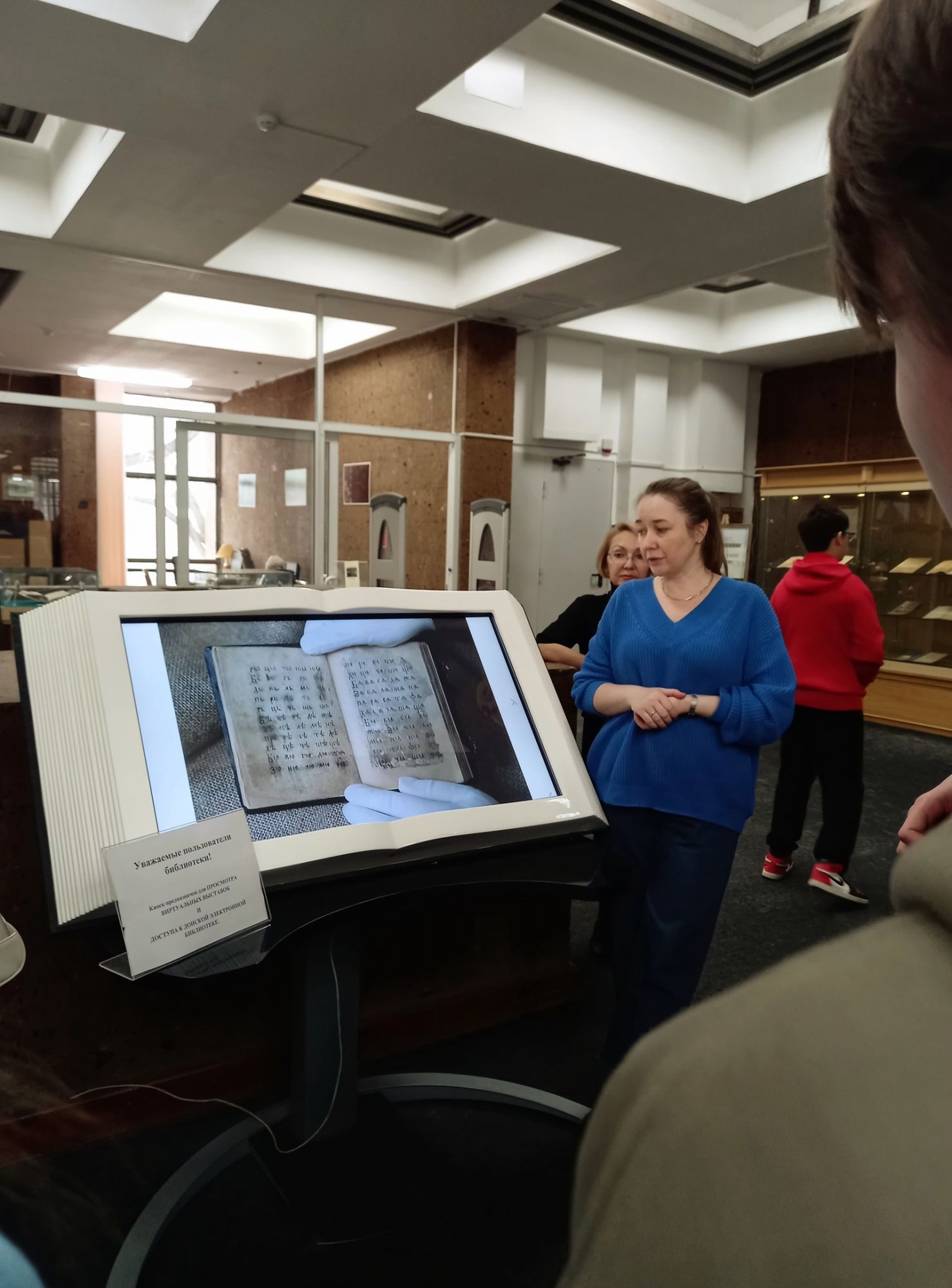 Многие ребята впервые оказались в старейшей на Юге России региональной библиотеке. Сотрудники познакомили с историей Донского книгохранилища, провели экскурсию по отделам библиотеки и рассказали о том, что современная "Публичка" - это один из крупных культурных центров города Ростова-на-Дону. Особенный интерес вызвало посещение Центра по работе с книжными памятниками, где ребята смогли увидеть редкие древние издания, в том числе и богослужебные.