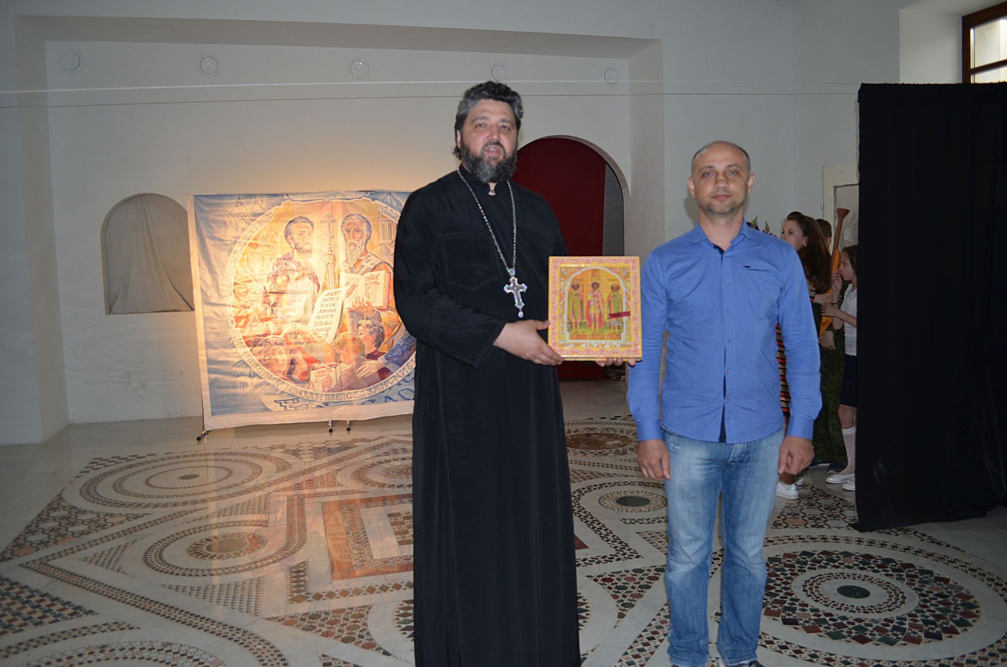 По окончании концерта настоятель прихода и духовник Воскресной школы протоиерей Валерий Волощук поздравил всех собравшихся с окончанием учебного года. Приятным сюрпризом стала книга о жизни наших русских святых, которую преподнес в дар приходской библиотеке папа воспитанников нашей школы.
