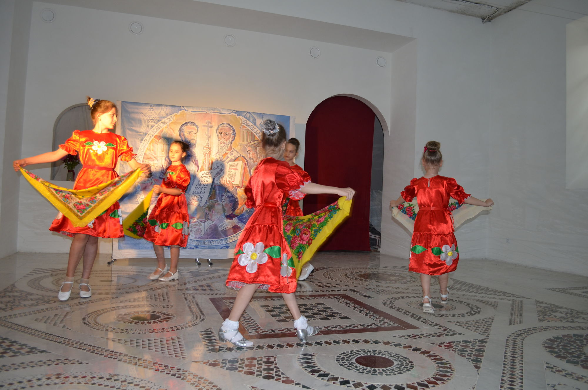 Зрителям были представлены две театральные постановки «Репка», а также «Волк и семеро козлят на новый лад». Спектакль «Репка» стал дебютным для театральной группы «Солнечные лучики», актёрами которой являются дети-инвалиды. Все зрители с теплотой и любовью встретили начинающих артистов. К этому дню все ребята подготовили свои номера. Участники танцевальной студии выступили с танцем «Платки», а хор учащихся воскресной школы исполнил песню о Родине. Не только творческие способности показали ребята в этот день. Каждый пришедший на праздник смог поучаствовать в интеллектуальной викторине и получить памятный сувенир.