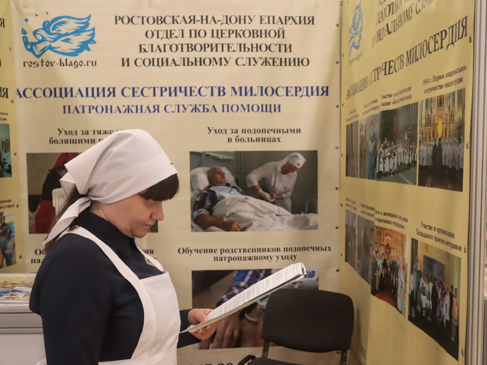Ежегодно наши сестры милосердия принимают участие в работе стенда Отдела по церковной благотворительности и социальному служению Ростовской-на-Дону епархии выставки-ярмарки «Дон Православный».