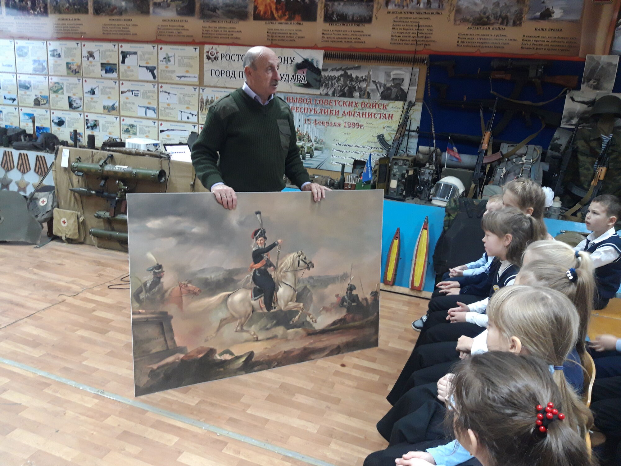 Юным защитникам Отечества была представлена историческая информация о жизни атамана Матвея Ивановича Платова в рамках 270 летнего юбилея со дня рождения Донского атамана, о событиях освобождения города Ростова-на-Дону 29 ноября 1941 года, освобождения Ростовской области от немецко-фашистских захватчиков 30 августа 1943 года.