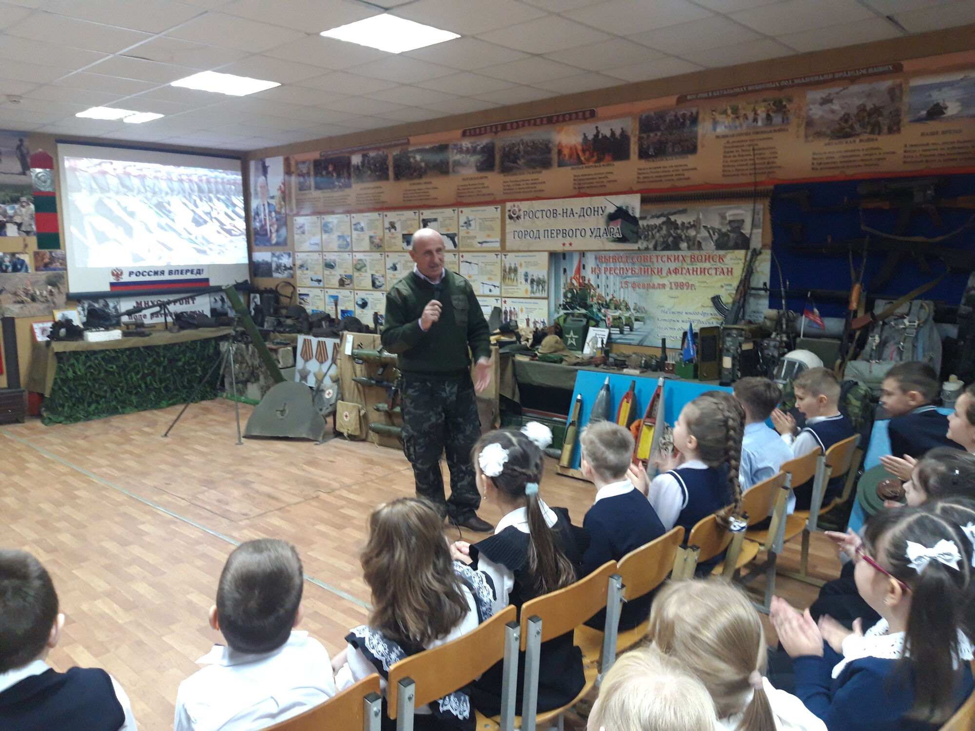 20 ноября 2023 года для учащихся школ Советского района города Ростова-на-Дону представителями Ростовского духовно-патриотического центра Святого Георгия Победоносца (Главного православного воинского храма ЮВО) были организованы «Уроки мужества - уроки живой истории», посвященные военной истории России и современной военно политической ситуации.