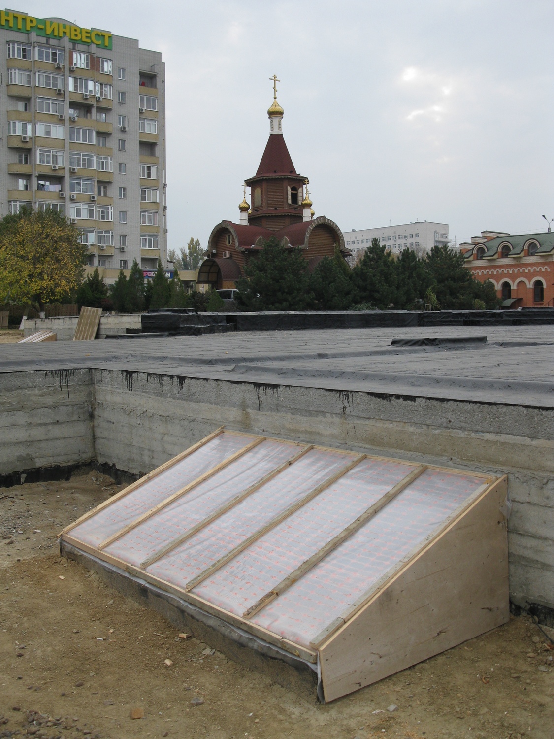 В этом году с особым усердием трудилась строительная фирма "КомСтрой", наш генеральный подрядчик, директором этой замечательной команды является Величко Евгений Александрович, фирма помогала не только силами профессиональной квалифицированной бригады, исполняя строительные работы, но искала средства и материалы для того, чтобы наше общее дело двигалось вперед. В этом году, слава Господу, мы многое успели сделать. Полностью завершили нулевой цикл - всю строительную черновую работу, подготовили Нижний Храм к зиме, чтобы внизу зимой можно было продолжать работы: утеплённый пол не позволит холодному воздуху проникать внутрь, капитально постелена качественная гидроизоляция на всей поверхности храма, утеплены и полностью изолированы приемки таким образом, чтобы туда не попадали снег и вода, но проникал свет.