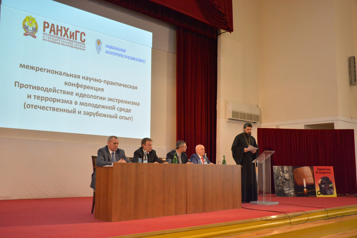 В конференции приняли участие: директор ЮРИУ РАНХиГС, кандидат экономических наук, доцент Локота О.В.; заместитель Губернатора Ростовской области, руководитель аппарата Правительства Ростовской области Артемов В.В.; заместитель руководителя аппарата Национального антитеррористического комитета Кулягин И.В.; доктор юридических наук, профессор ЮРИУ РАНХиГС Воронцов С.А.; заслуженный юрист России, доктор юридических наук, профессор Южного Федерального университета Корецкий Д.А.; начальник службы по обеспечению деятельности антитеррористической комиссии Ростовской области Благинин А.М.; заведующая кафедрой уголовного процесса и криминалистики Южного Федерального университета Апостолова Н.Н.; журналист Государственной радио-компании «Радио России» Штейнбух А.Г. и другие.