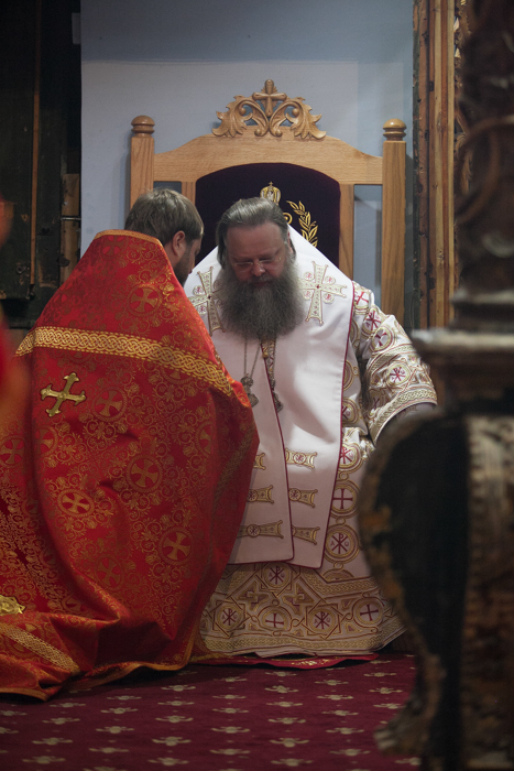 По окончании богослужения митрополита Меркурия приветствовали благочинный приходов Аксайского округа протоиерей Андрей Мекушкин и настоятель Воскресенского войскового соборного храма ст. Старочеркасской протоиерей Валерий Волощук.