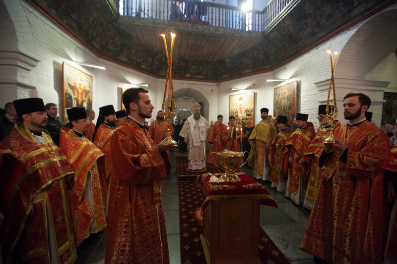 Его Высокопреосвященству сослужили благочинный приходов Аксайского округа протоиерей Андрей Мекушкин, настоятель Воскресенского войскового собора ст. Старочеркасской протоиерей Валерий Волощук, секретарь Ростовского Епархиального управления иеромонах Артемий (Кузьмин), и.о. наместника Свято-Донского Старочеркасского мужского монастыря иеромонах Сергий (Коломиц), клирики благочиния.
