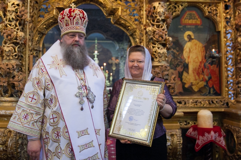 По завершении богослужения в преддверии праздника жен мироносиц Глава Донской митрополии удостоил знаков высокого архиерейского внимания жен клириков Ростовской-на-Дону епархии.