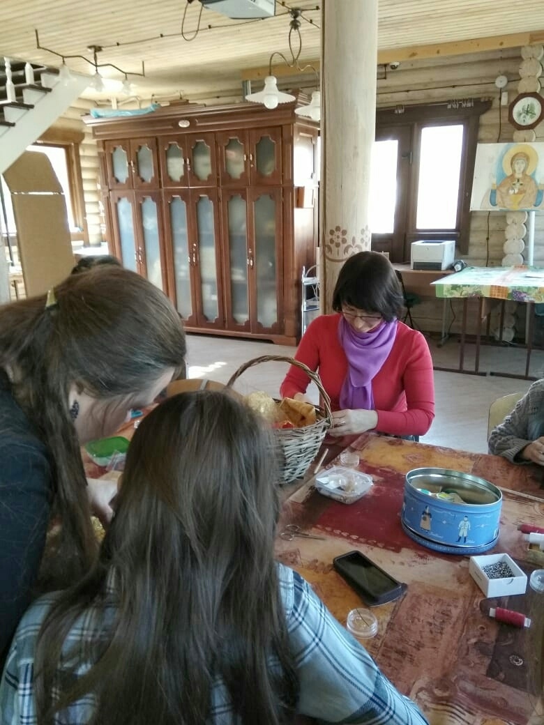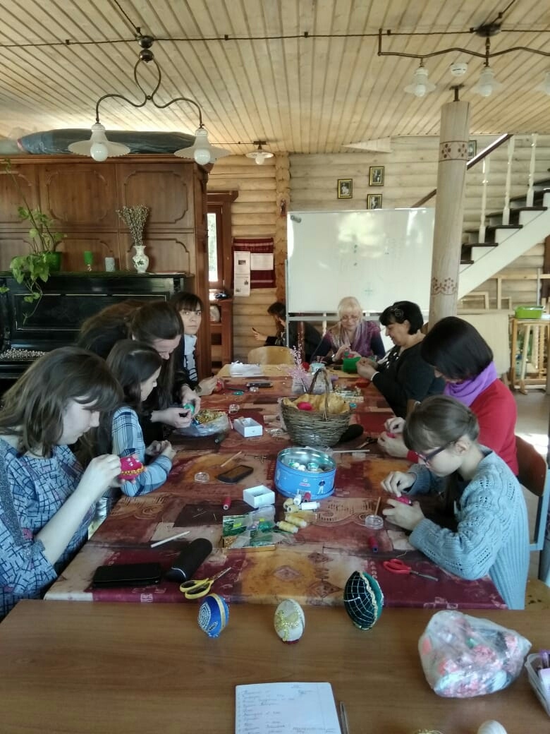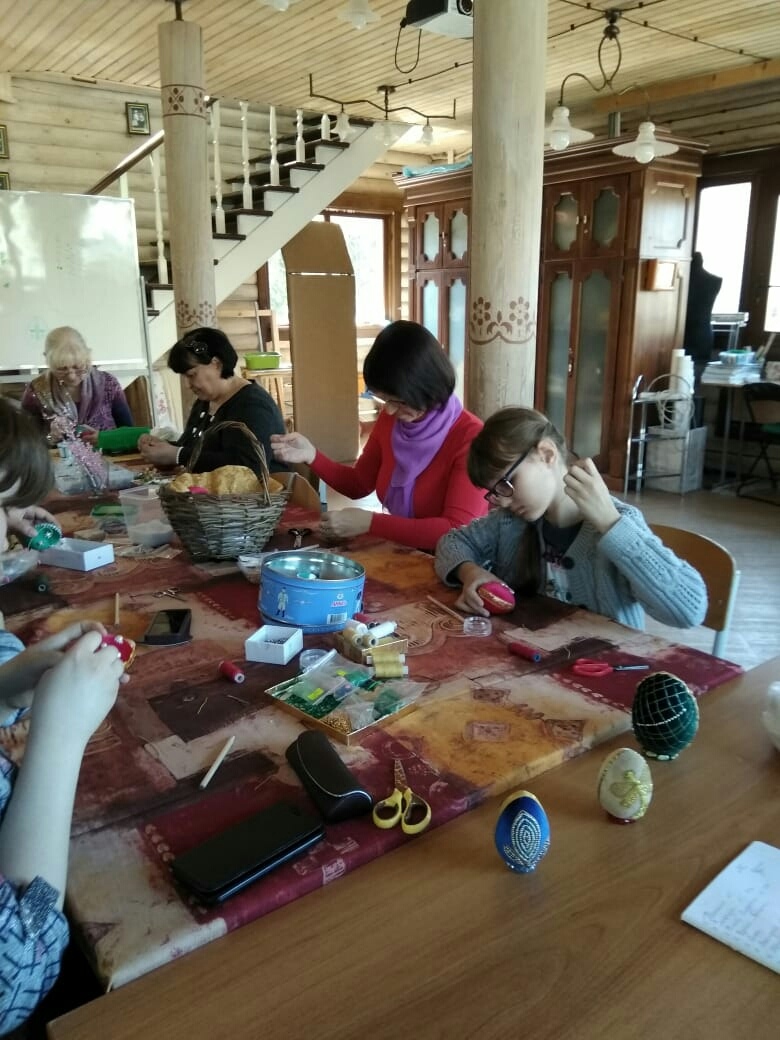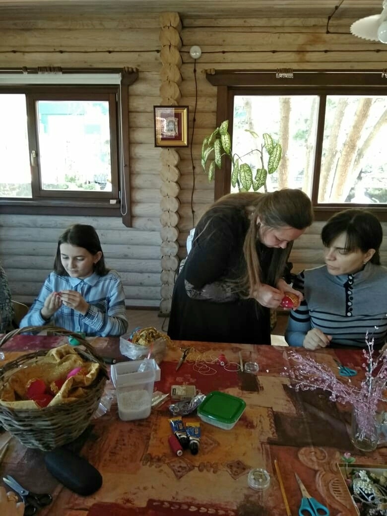 В праздник Входа Господня в Иерусалим, после Божественной Литургии, на нашем приходе состоялся творческий мастер класс по созданию вышитых Пасхальных яиц.