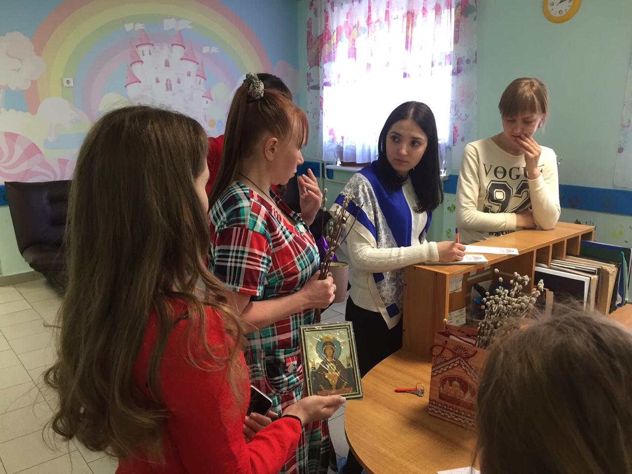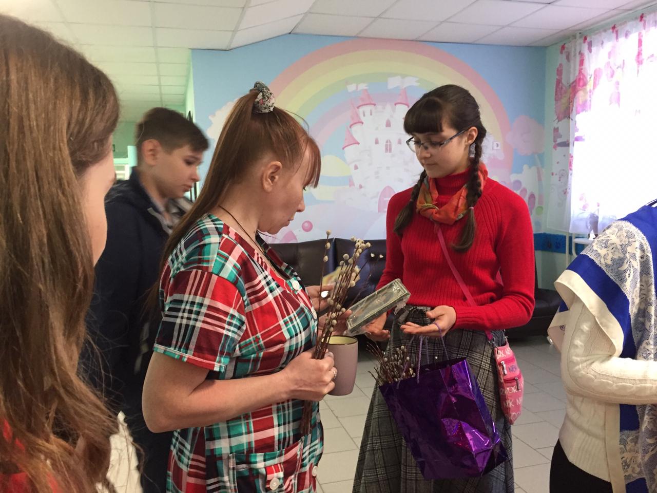 21 апреля 2019 года ребята из воскресной школы и молодежного клуба посетили пациентов кардиоирургического центра РОКБ. Они поздравили всех с праздником Входа Господня во Иерусалим, рассказали о смысле Вербного воскресения, помогли написать записочки, каждому подарили освященную вербочку и подарили каждому освященную вербу.