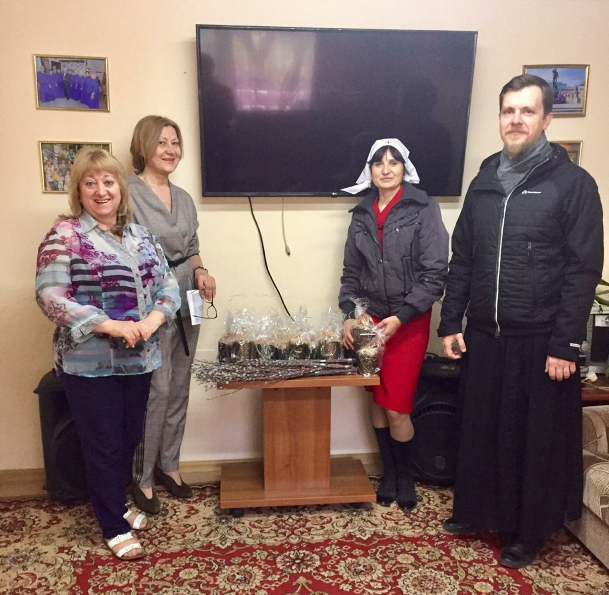 В рамках сотрудничества между нашим приходом и центром намечены планы совместной деятельности. На учёт нашим приходом взяты 5 бабушек инвалидов, которым регулярно доставляют продуктовые наборы. 20 апреля с праздником Светлой Пасхи была поздравлена администрация центра и всем подопечным подарены освященные пасхальные куличи и верба.