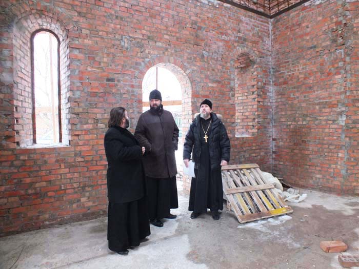 Участники рабочей встречи осмотрели строящееся здание храма-часовни, обсудили вопросы, касающиеся оформления необходимой документации, и другие организационные вопросы.