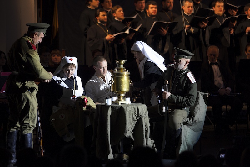 Активное участие в проведении концерта приняли представители прихода Святого Георгия Победоносца Храма Иоанна Воина. Приходские священники исполняли исторические песни в составе сводного хора. Представители приходского духовно патриотического центра читали авторские стихи, организовывали сценические мини-постановки в военной форме времен Первой мировой войны. По окончании концерта Глава Донской митрополии митрополит Ростовский и Новочеркасский Меркурий поблагодарил всех участников и организаторов за большую организационную творческую работу.