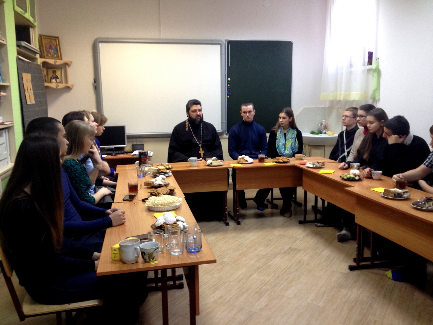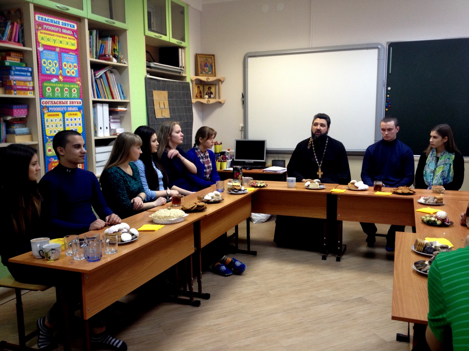 Встреча получилась очень теплой, долгожданной с двух сторон:)! Отец Валерий предложил нам для беседы очень актуальную тему взаимоотношений парня-девушки, мужчины-женщины, по-православному правильности создания семьи, чистоты отношений. Обсуждение было очень активным, участники высказывали свое мнение, задавали батюшке много вопросов на важные для них темы.