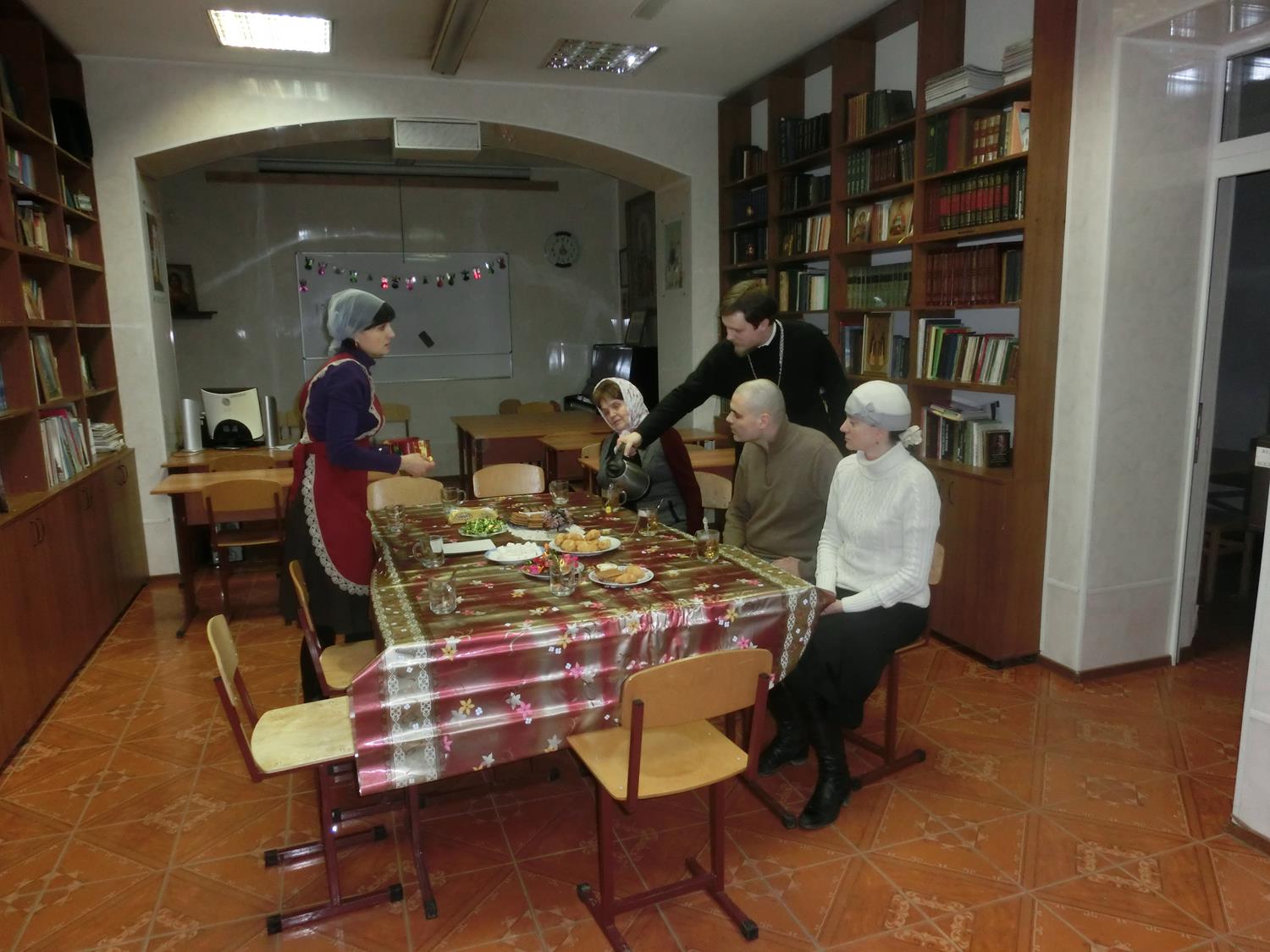 Собрание прошло в непринужденной обстановке в форме чаепития. По окончании встречи отец Роман вручил семьям подарки.
