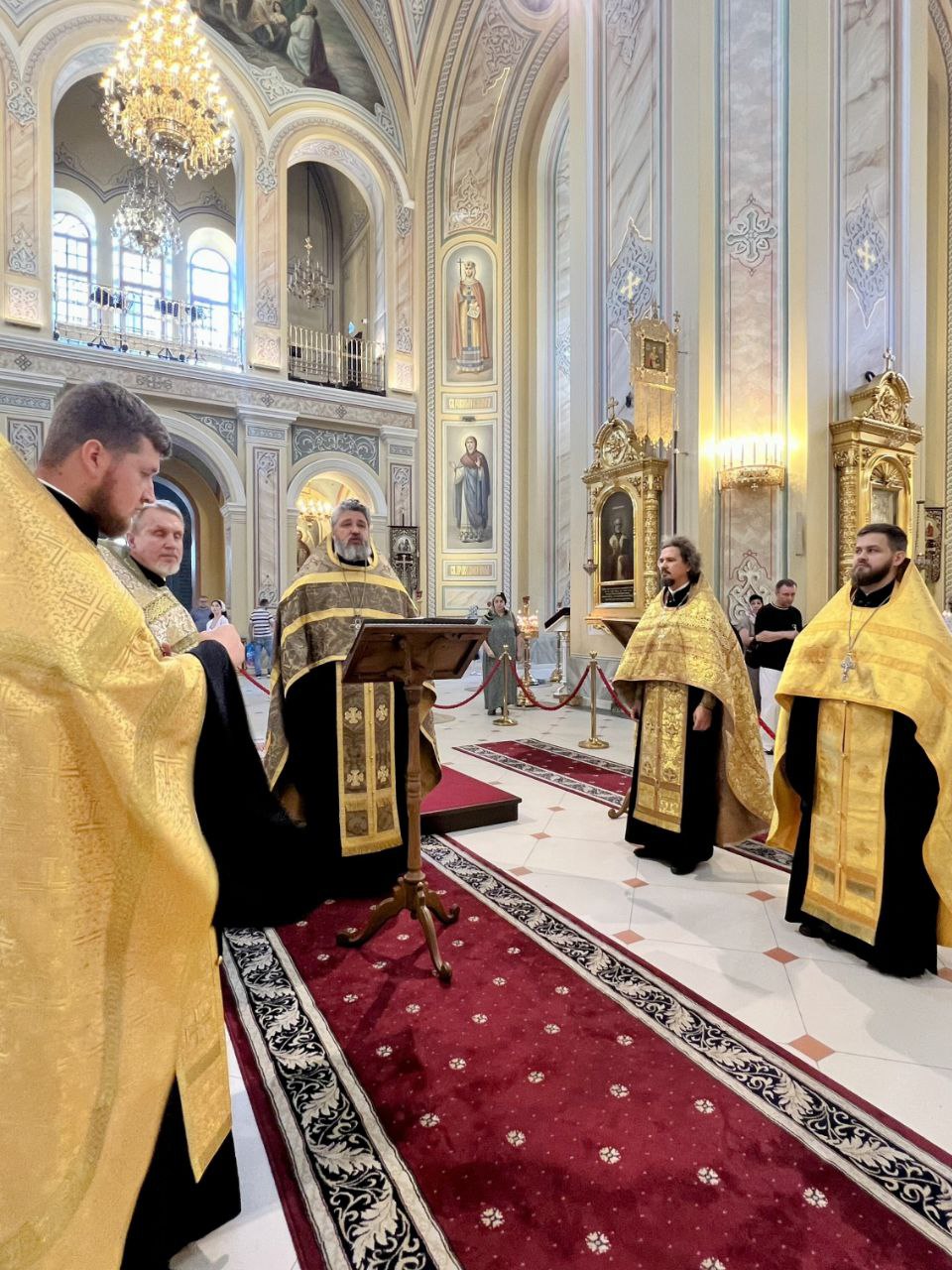 Настоятель и духовенство нашего прихода молитвенно приняли участие в торжественных богослужениях - Божественной литургии и молебном пении святителю Тихону перед иконой и ковчегом с его святыми мощами в Кафедральном соборе Рождества Пресвятой Богородицы.