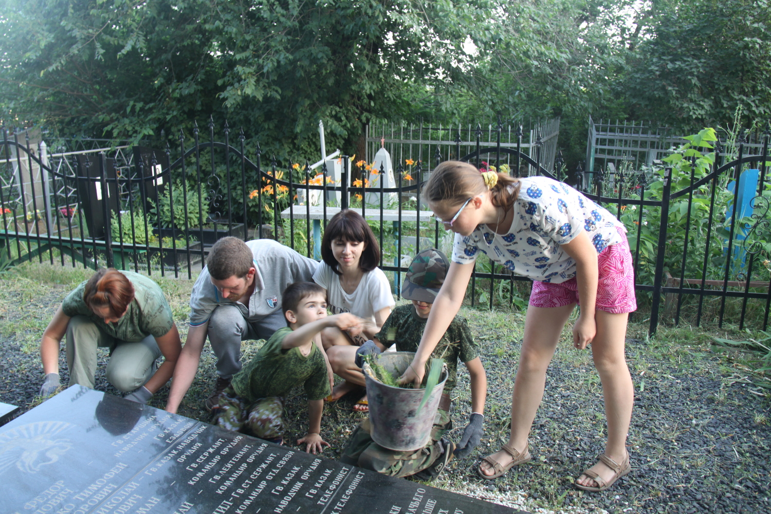 21 июня учащиеся, их родители и наставники-преподаватели приходской воскресной школы храма Иоанна Воина Прихода Святого Георгия Победоносца организовали поездку в западный микрорайон города Ростова-на-Дону для проведения работы по благоустройству братской могилы воинов казаков-кавалеристов батареи Дмитрия Пескова, освобождавших город Ростов-на-Дону в феврале 1943 года. Три года назад по инициативе представителей Ростовского духовно-патриотического центра Святого Георгия Победоносца совместными усилиями поискового объединения «Миус-фронт», производственного предприятия «Родос», Ростовского Областного военного комиссариата, администрации Советского района города Ростова-на-Дону, учащихся и преподавателей школы №88 это воинское захоронение было приведено в надлежащий, достойный вид.