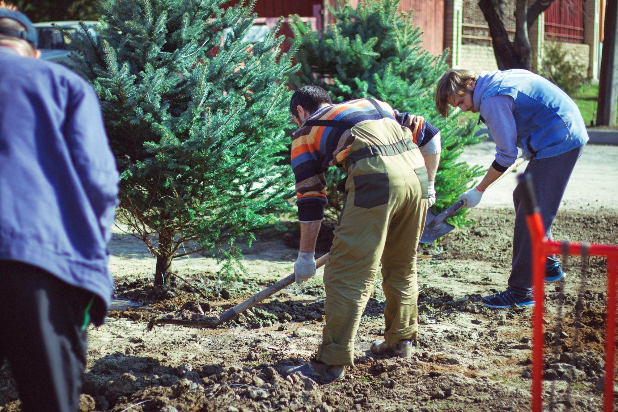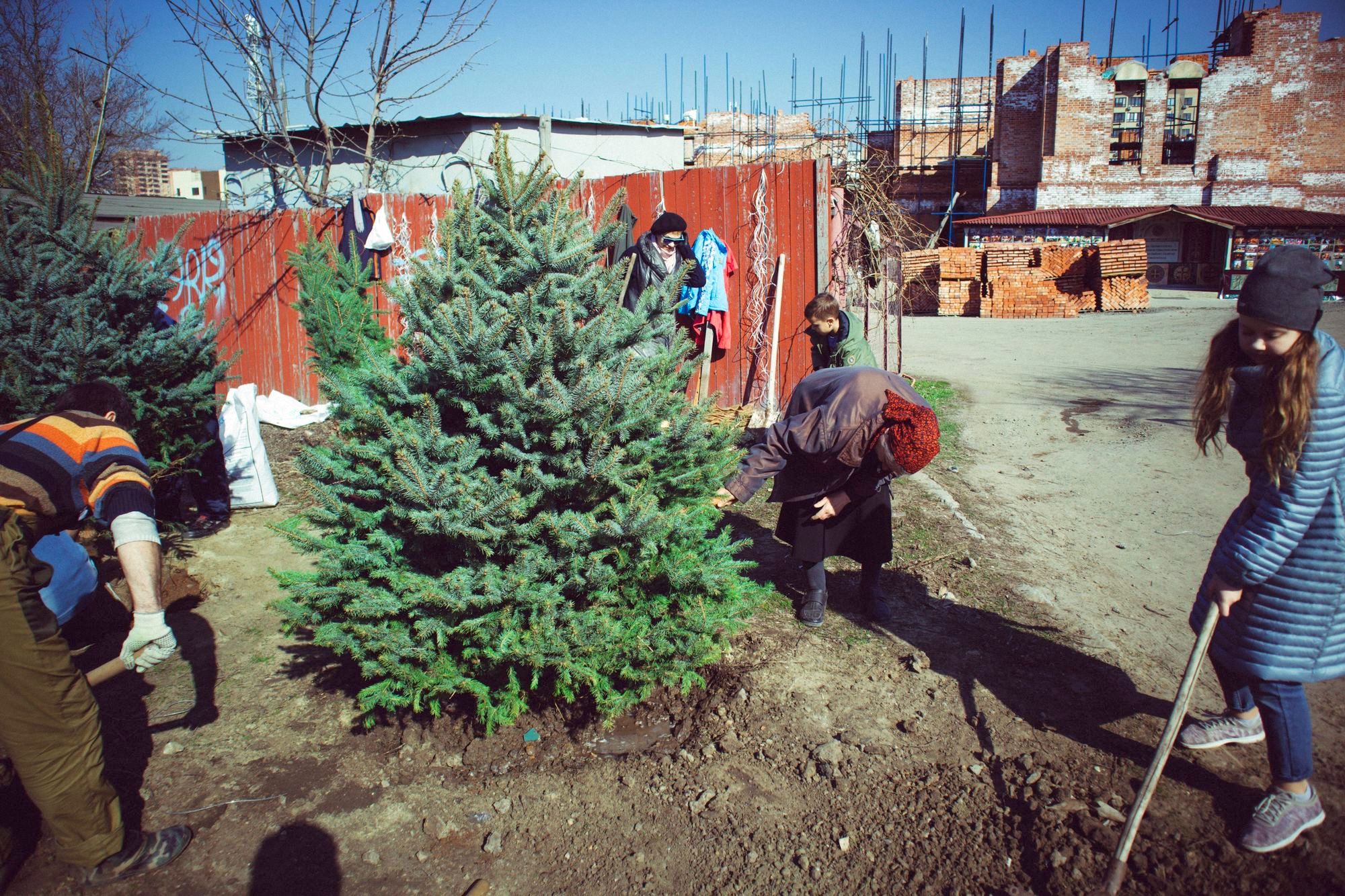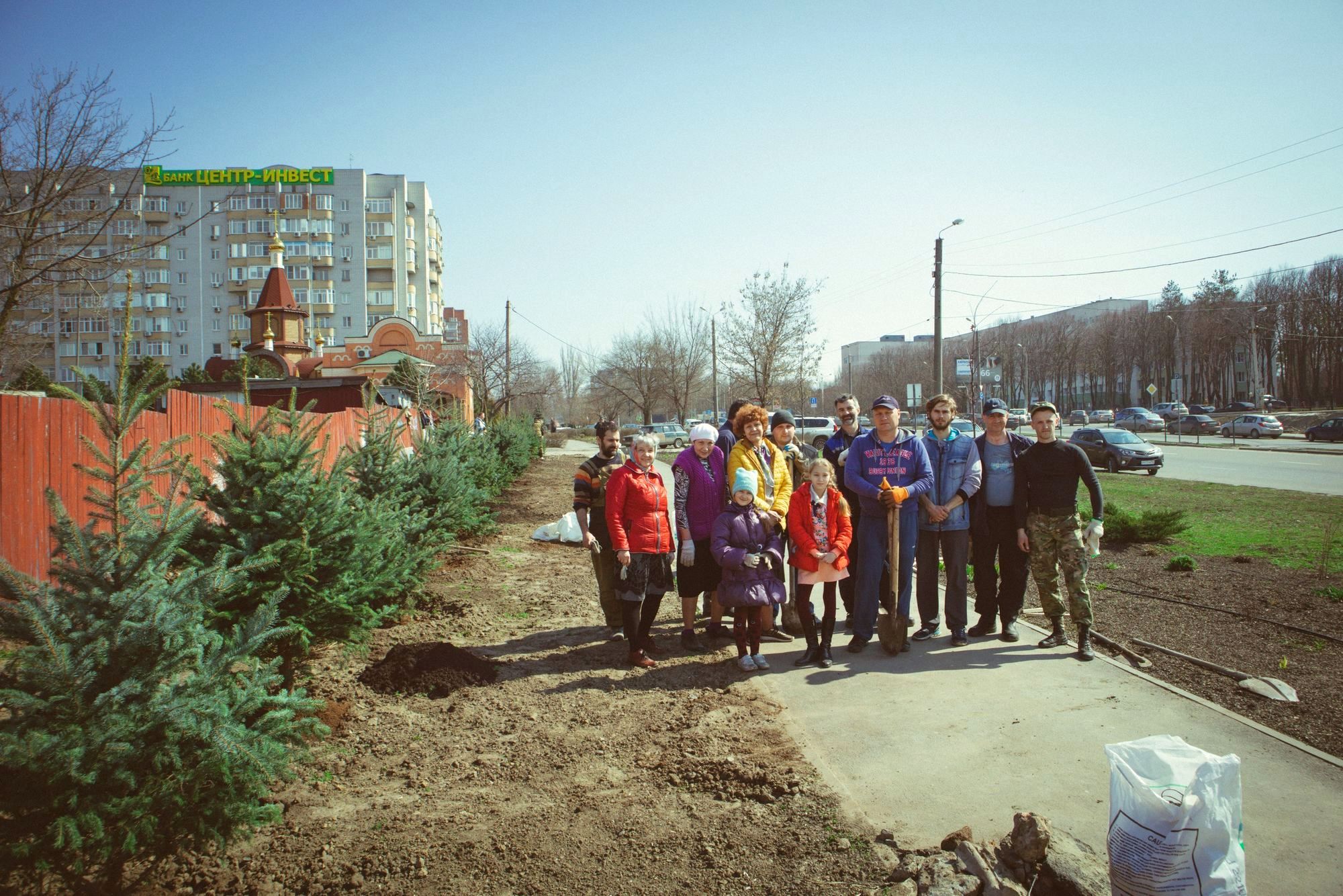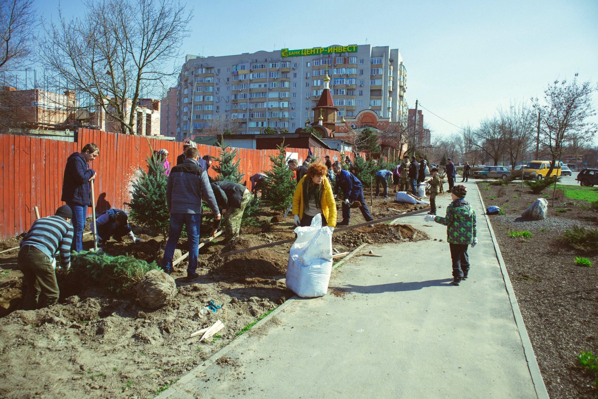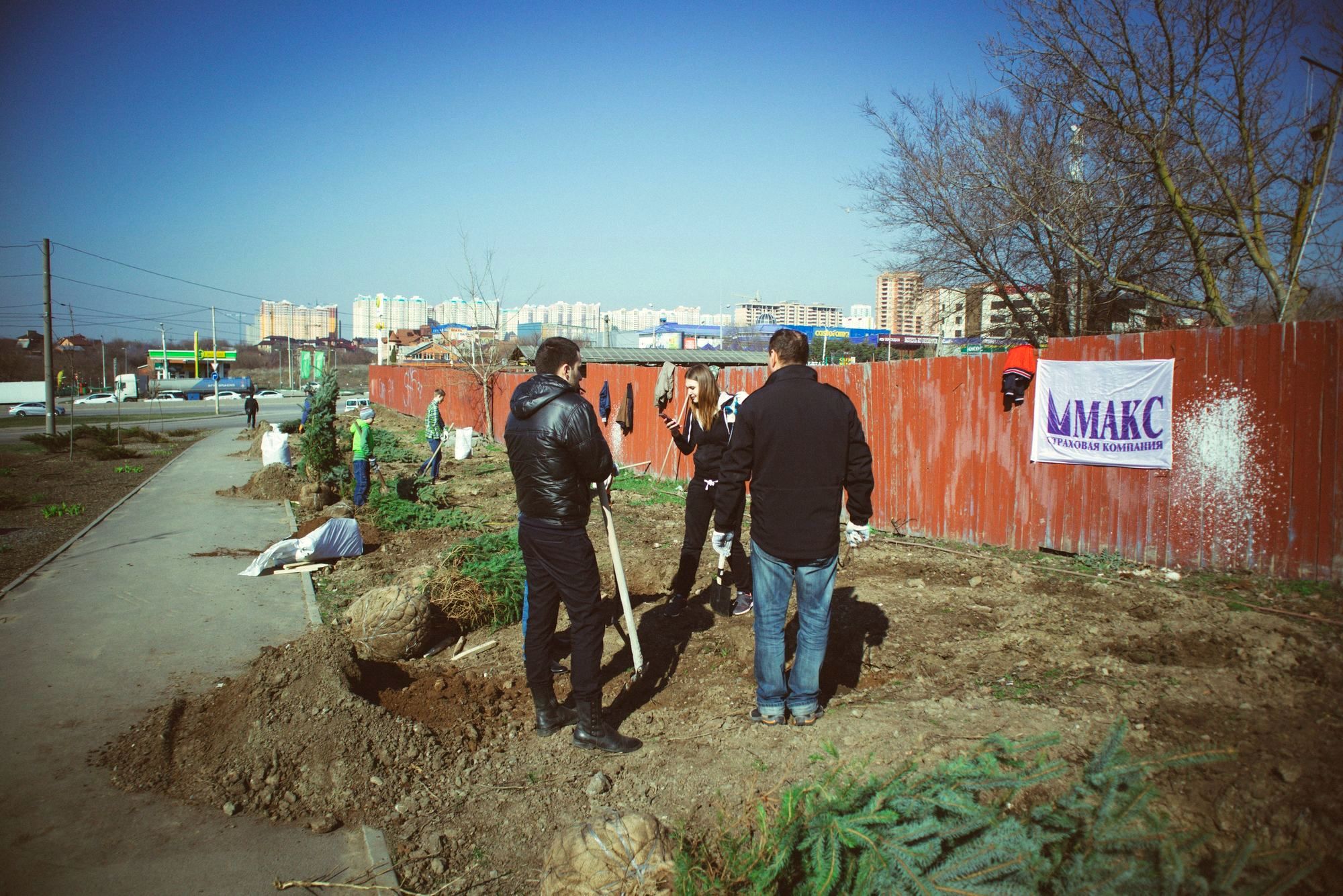 Флористы, прихожане, учащиеся воскресной школы, участники молодёжного движения Парикия и сотрудники ростовского отделения страховой группы "Макс" высадили на территории прихода более 20 пушистых ёлок, которые впоследствии станут живой изгородью.