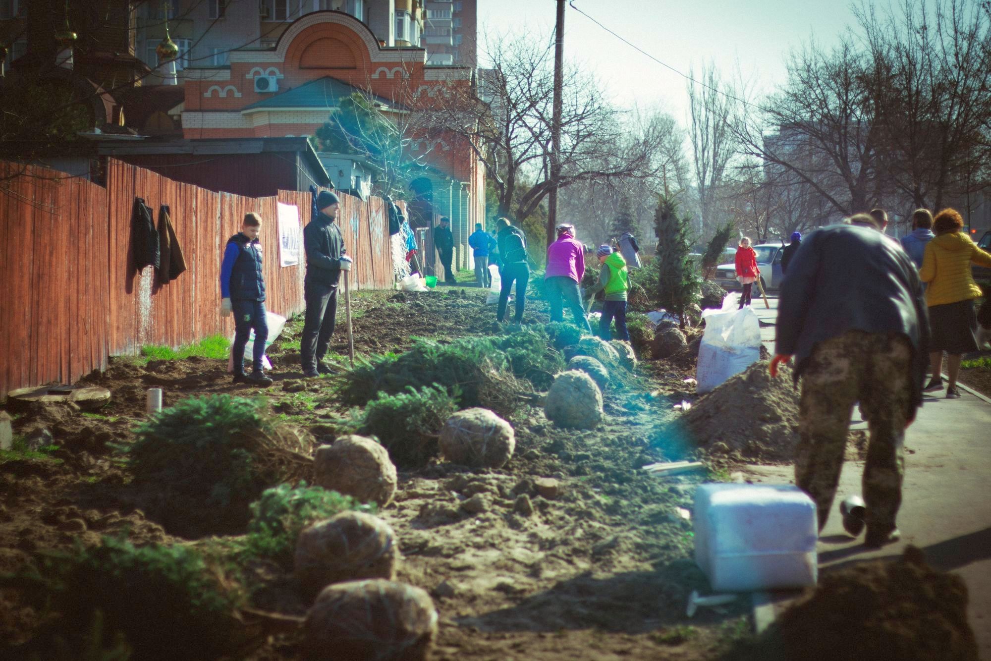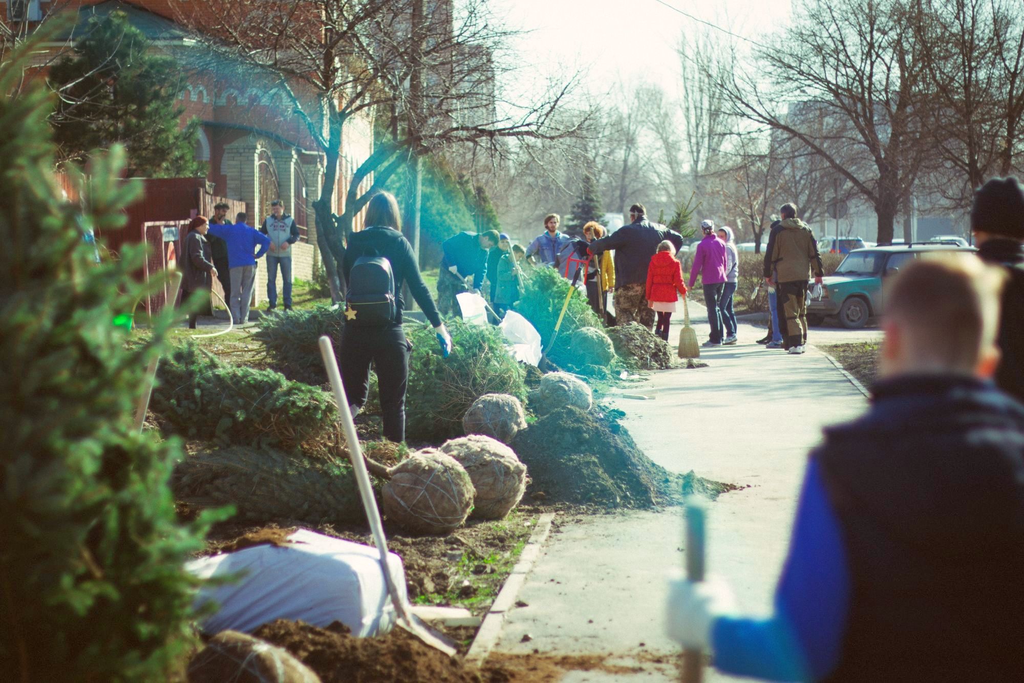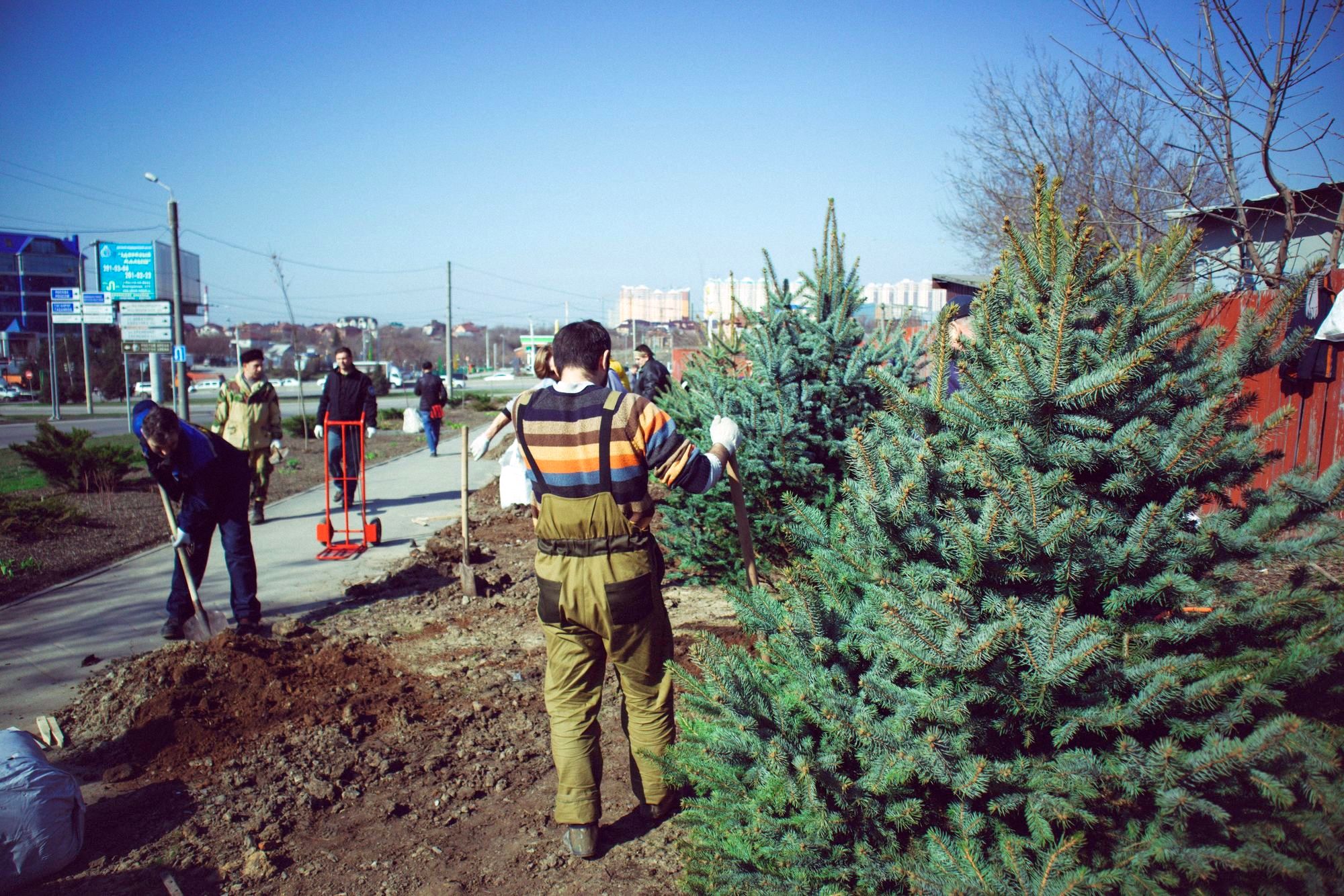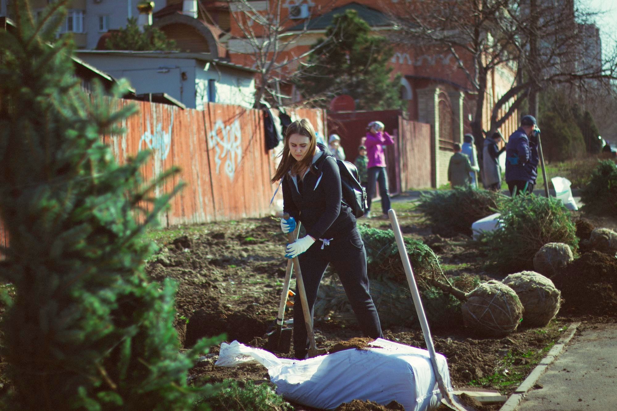 Флористы, прихожане, учащиеся воскресной школы, участники молодёжного движения Парикия и сотрудники ростовского отделения страховой группы "Макс" высадили на территории прихода более 20 пушистых ёлок, которые впоследствии станут живой изгородью.