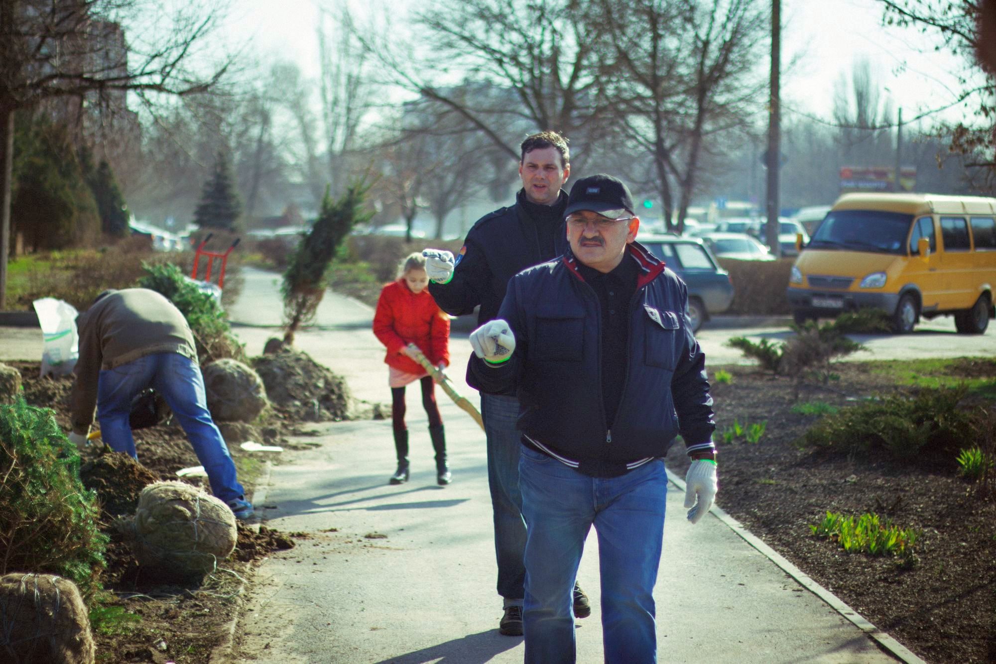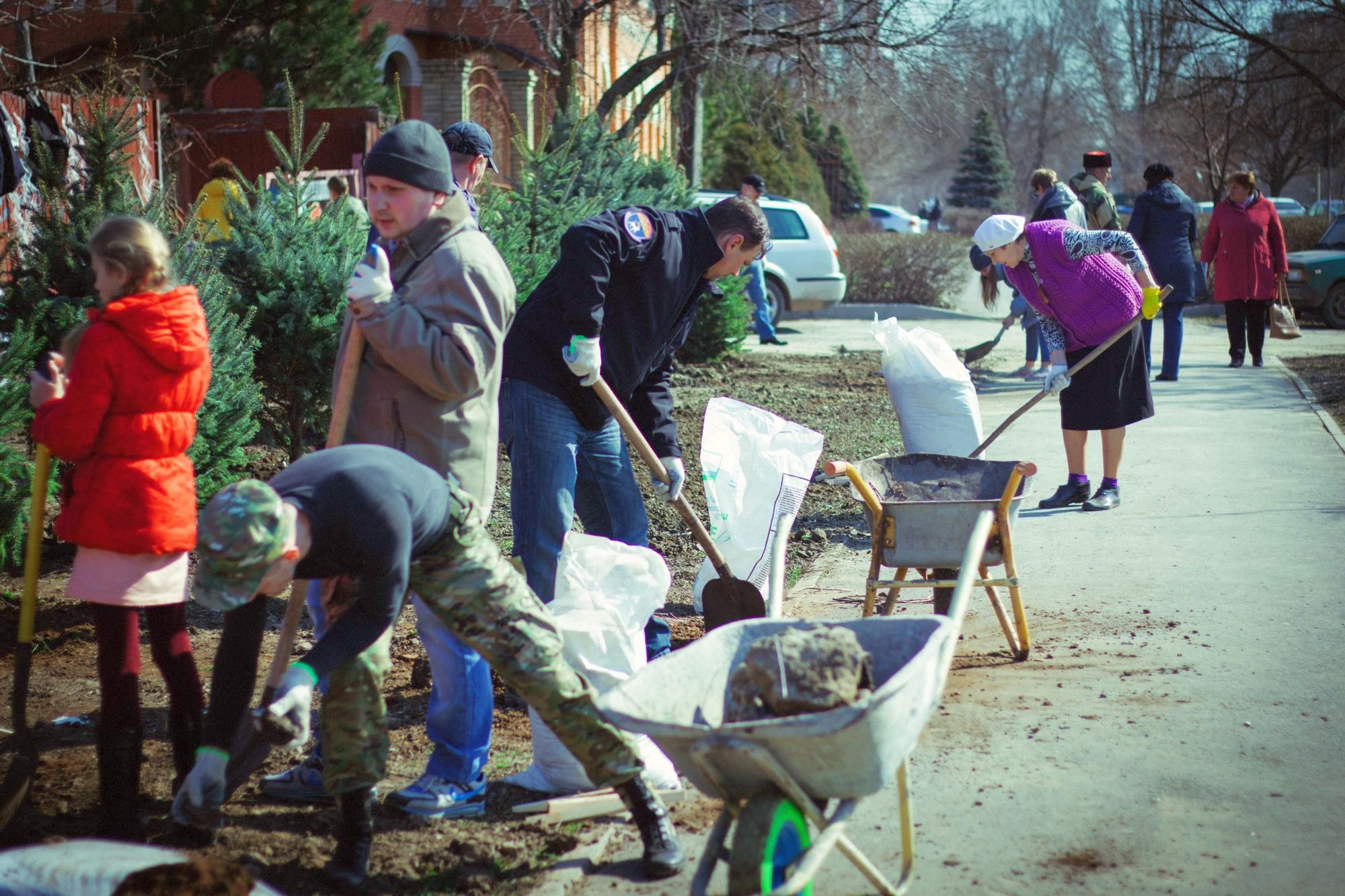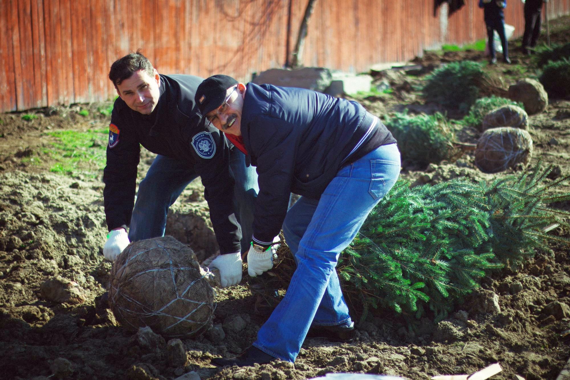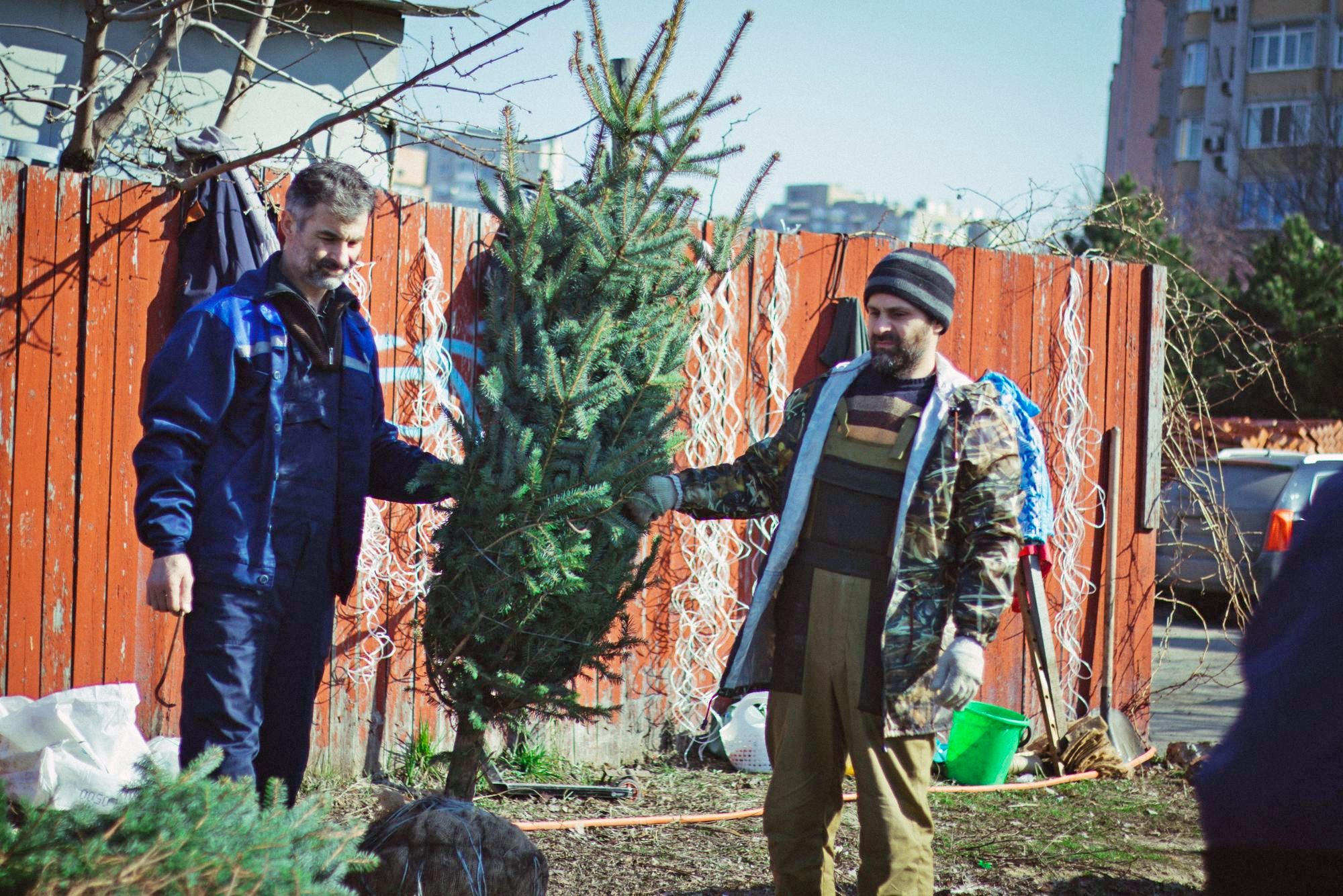 Флористы, прихожане, учащиеся воскресной школы, участники молодёжного движения Парикия и сотрудники ростовского отделения страховой группы "Макс" высадили на территории прихода более 20 пушистых ёлок, которые впоследствии станут живой изгородью.
