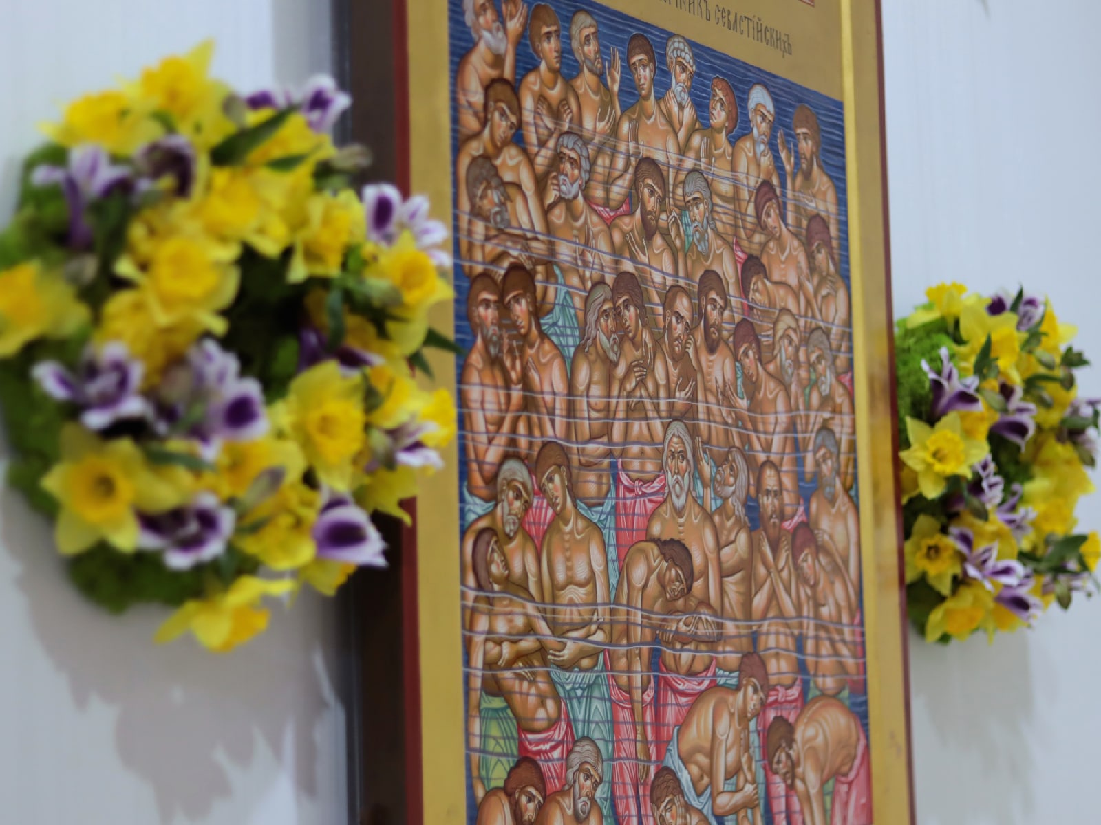 Страстотерпцы всечестнии, воини Христовы четыредесяте, твердии оружницы, сквозе бо огнь и воду проидосте и Ангелом сограждане бысте, с нимиже молитеся Христу о иже верою хвалящих вас. Слава Давшему вам крепость, слава Венчавшему вас, слава Подавающему вами всем исцеления.