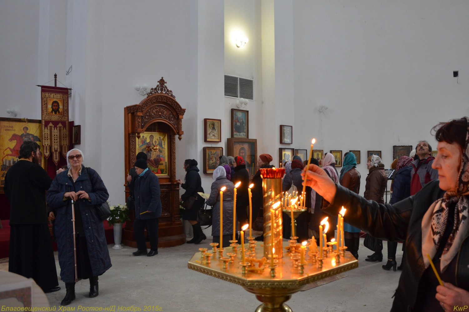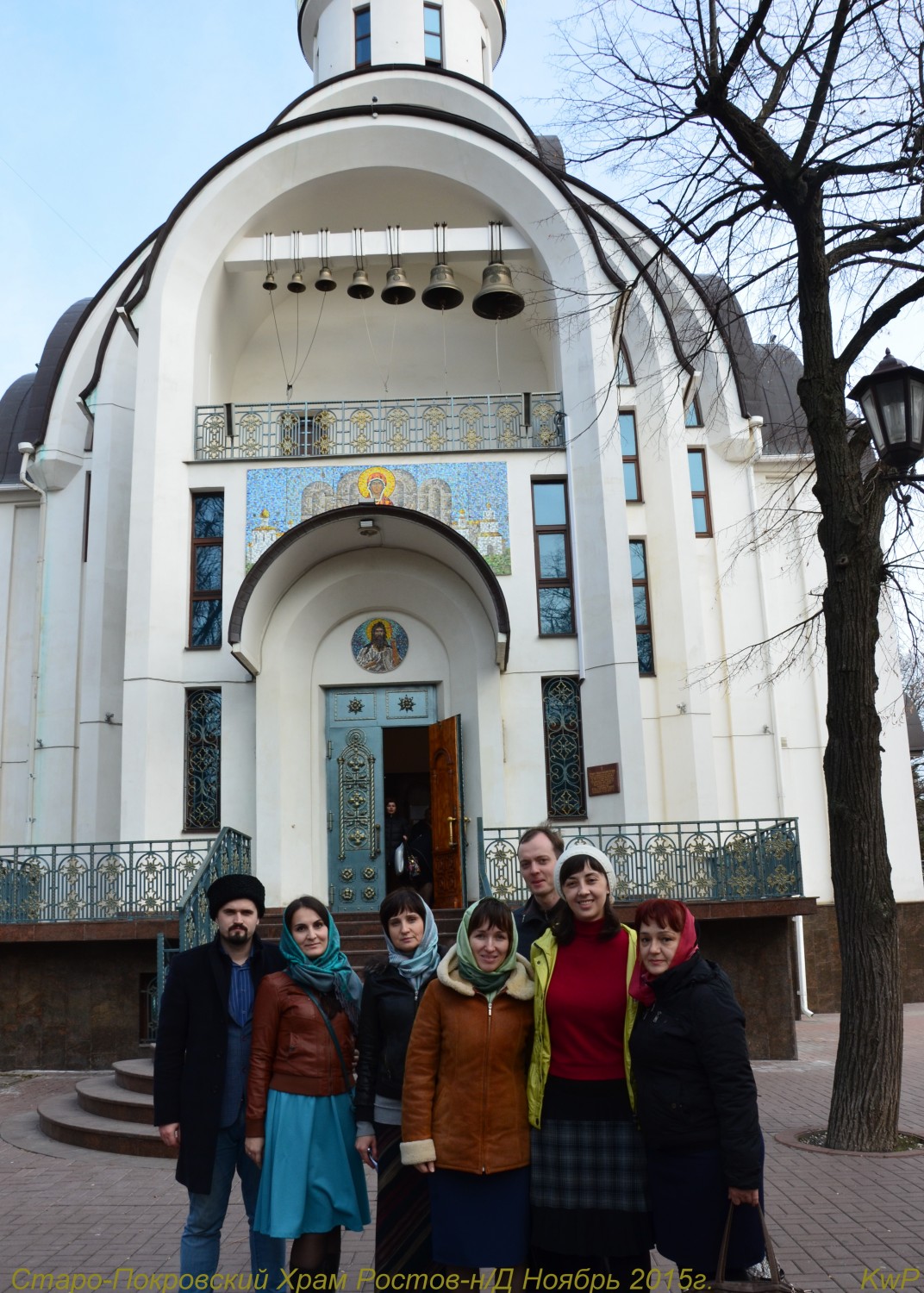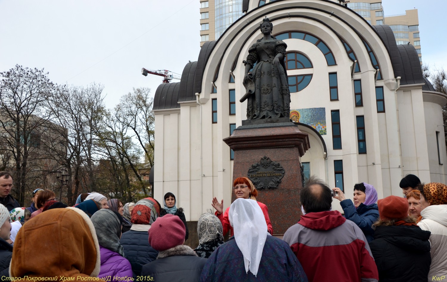 В день чествования Собора Архистратига Божия Михаила и прочих небесных сил бесплотных, сестры милосердия Храма Иоанна Воина совершили паломническую поездку по Храмам Ростова-на-дону. Нашим экскурсоводом была старшая сестра Свято-Георгиевского Храма Левит Наталья Лазаревна. Первым Храмом, который посетили сестры, был Храм Дмитрия Ростовского, затем мы отправились в Храм Вознесения Господня, который находится на братском кладбище. В Благовещенском греческом Храме, сестры милосердия приложились к иконе «Всецарица», написанной на Афоне и освященной от чудотворной иконы «Всецарица» в Ватопедском монастыре, подали записочки о здравии своих близких, наших сестер, страдающих тяжелыми заболеваниями.