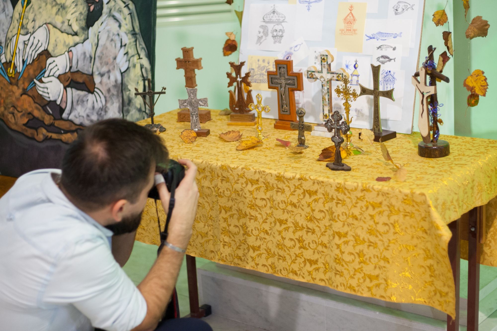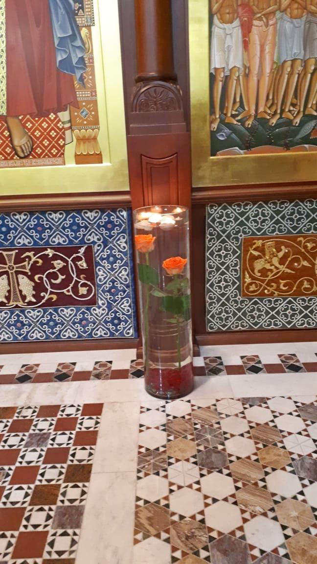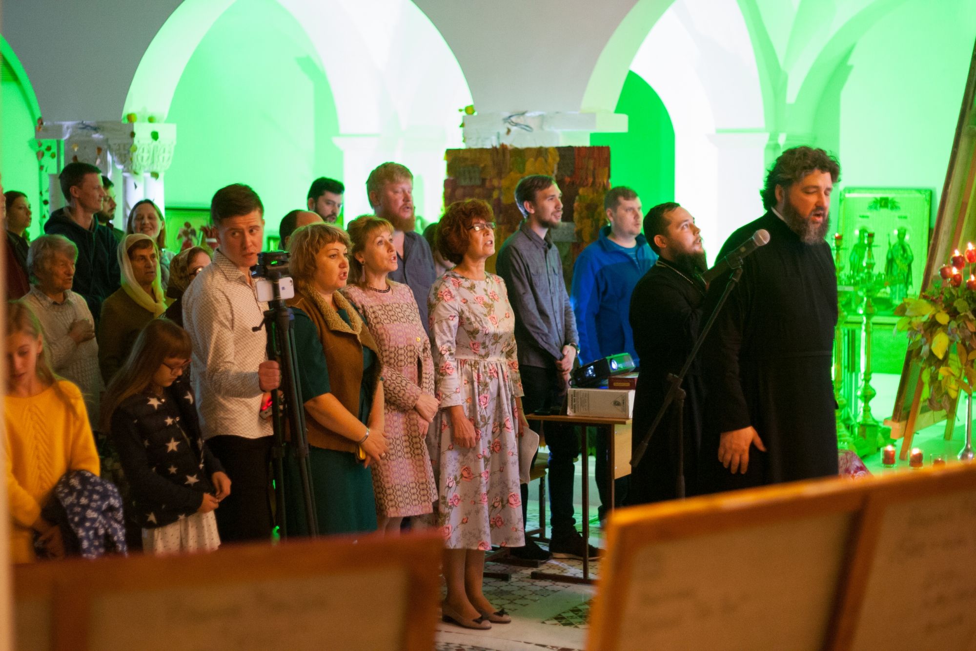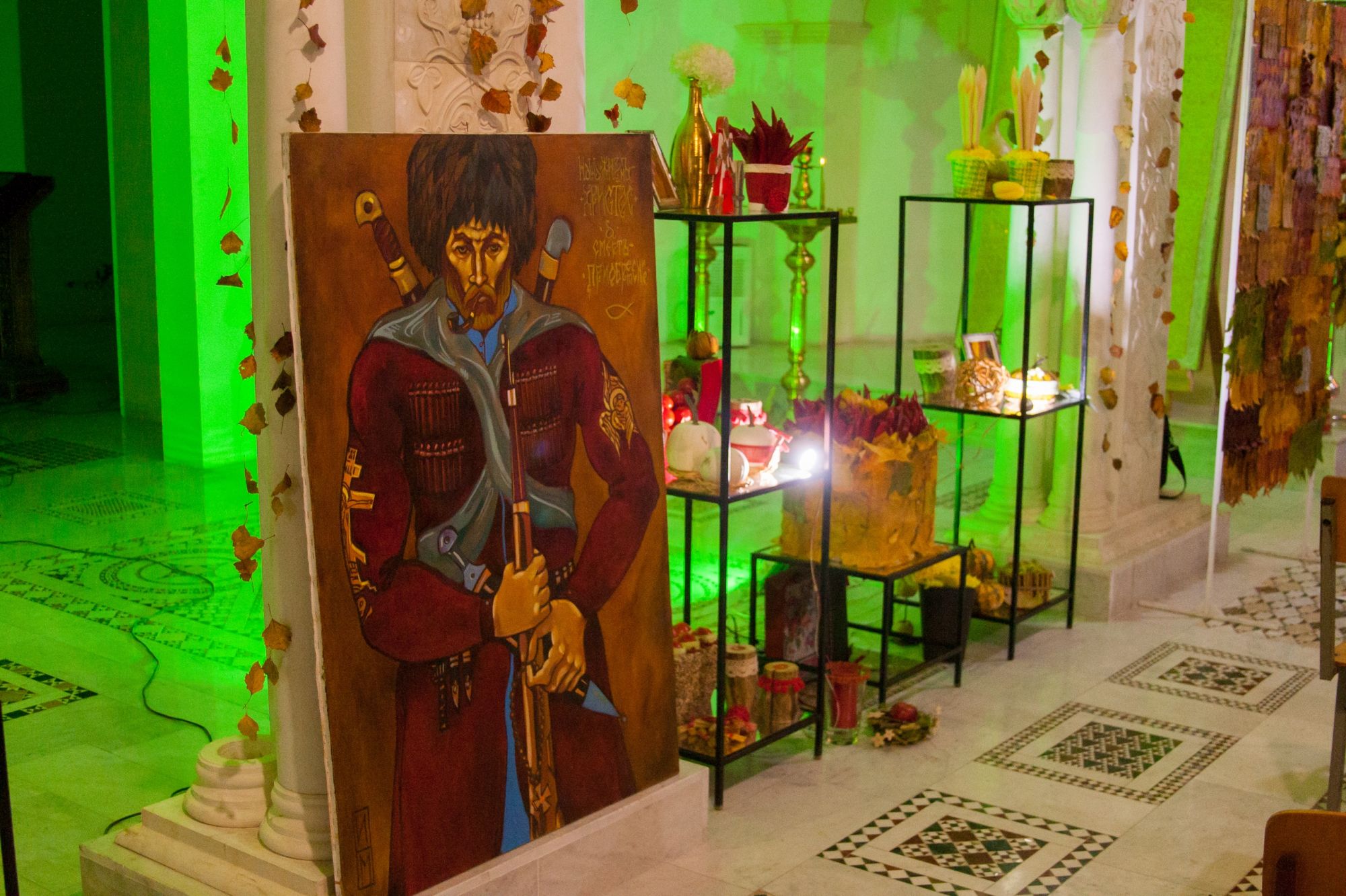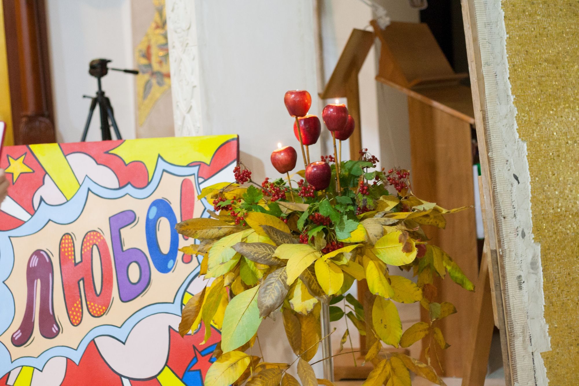 Дизайнеры флористической мастерской прихода святого Георгия Победоносца подготовили уникальную композицию из даров осени, украсив вход в храм. Флорист международного класса, руководитель мастерской Валерия Букина прочла лекцию о цветочном искусстве.