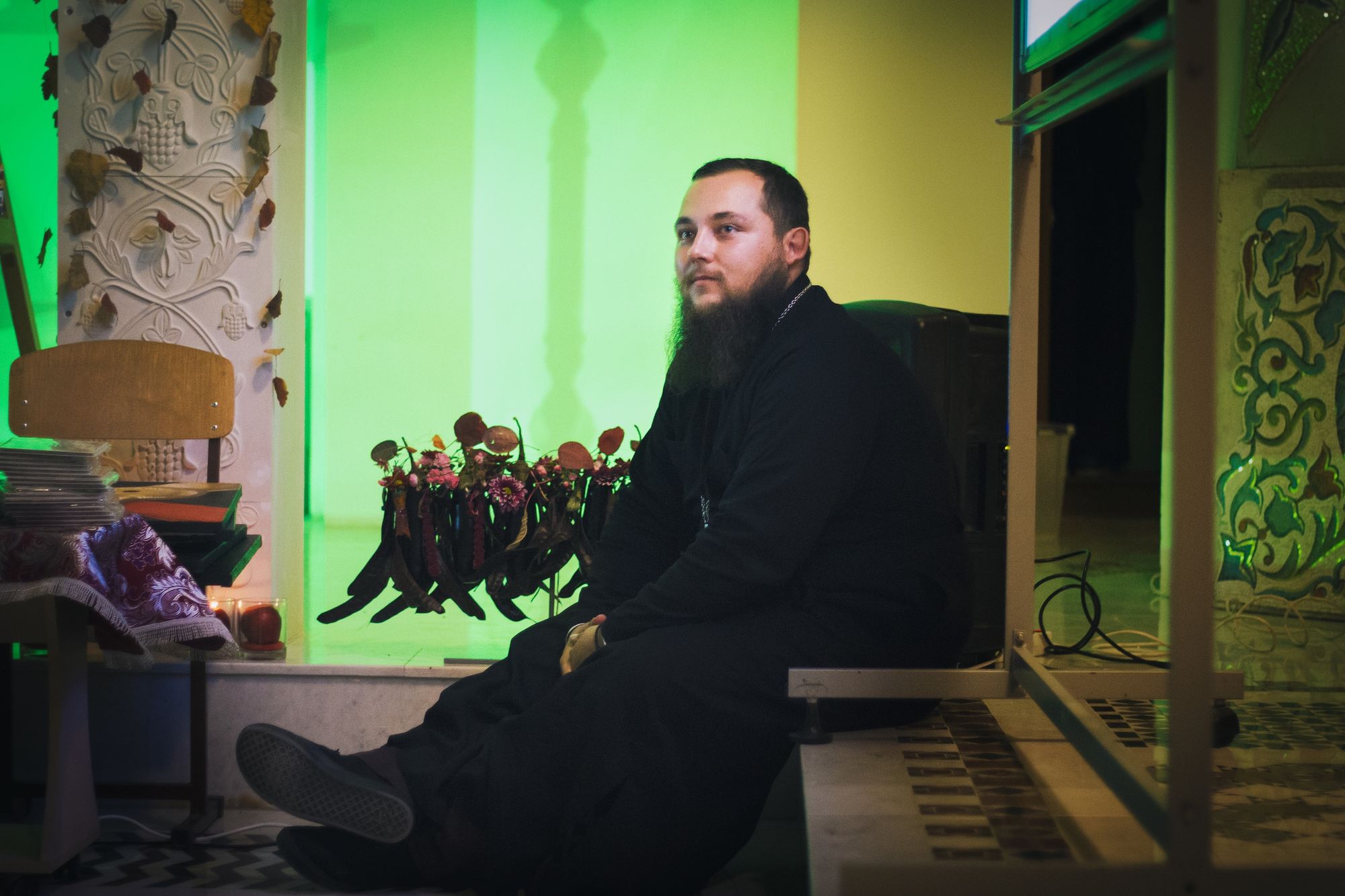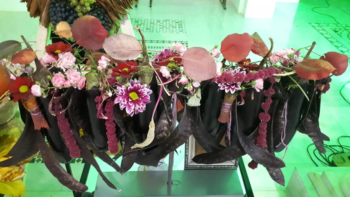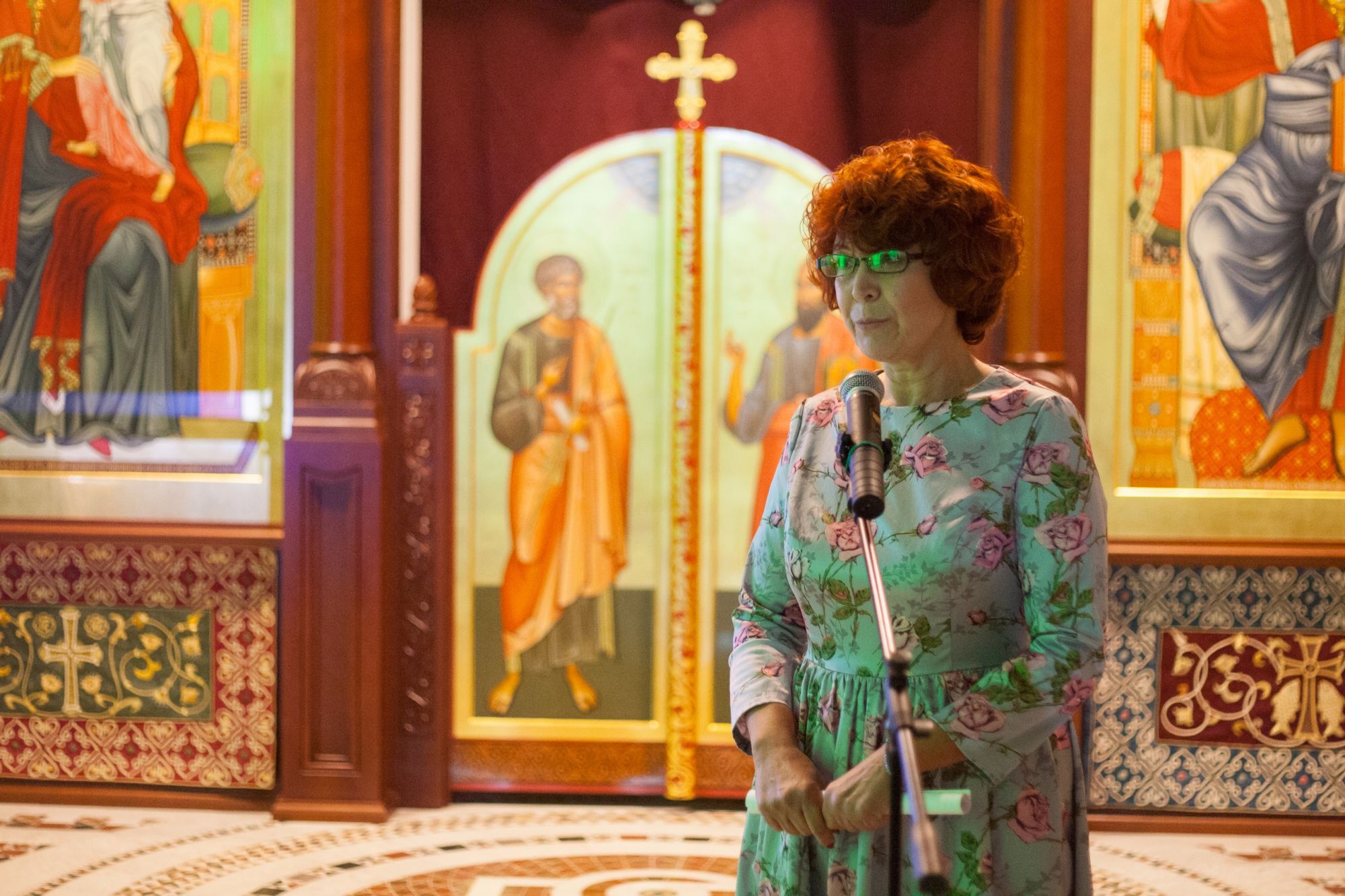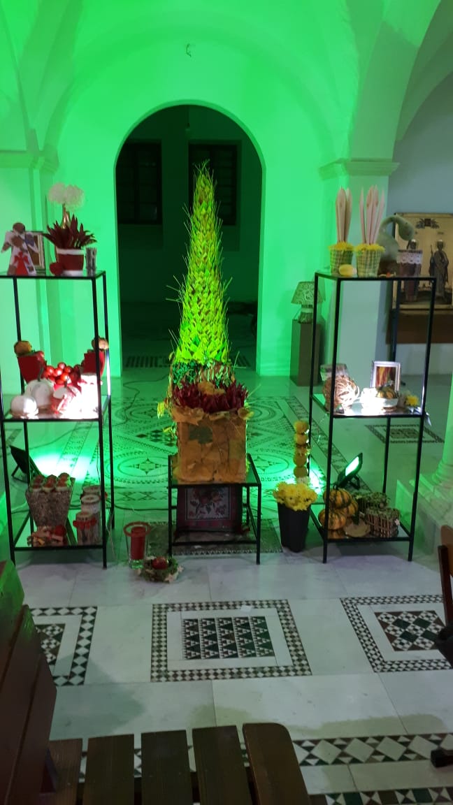 Дизайнеры флористической мастерской прихода святого Георгия Победоносца подготовили уникальную композицию из даров осени, украсив вход в храм. Флорист международного класса, руководитель мастерской Валерия Букина прочла лекцию о цветочном искусстве.