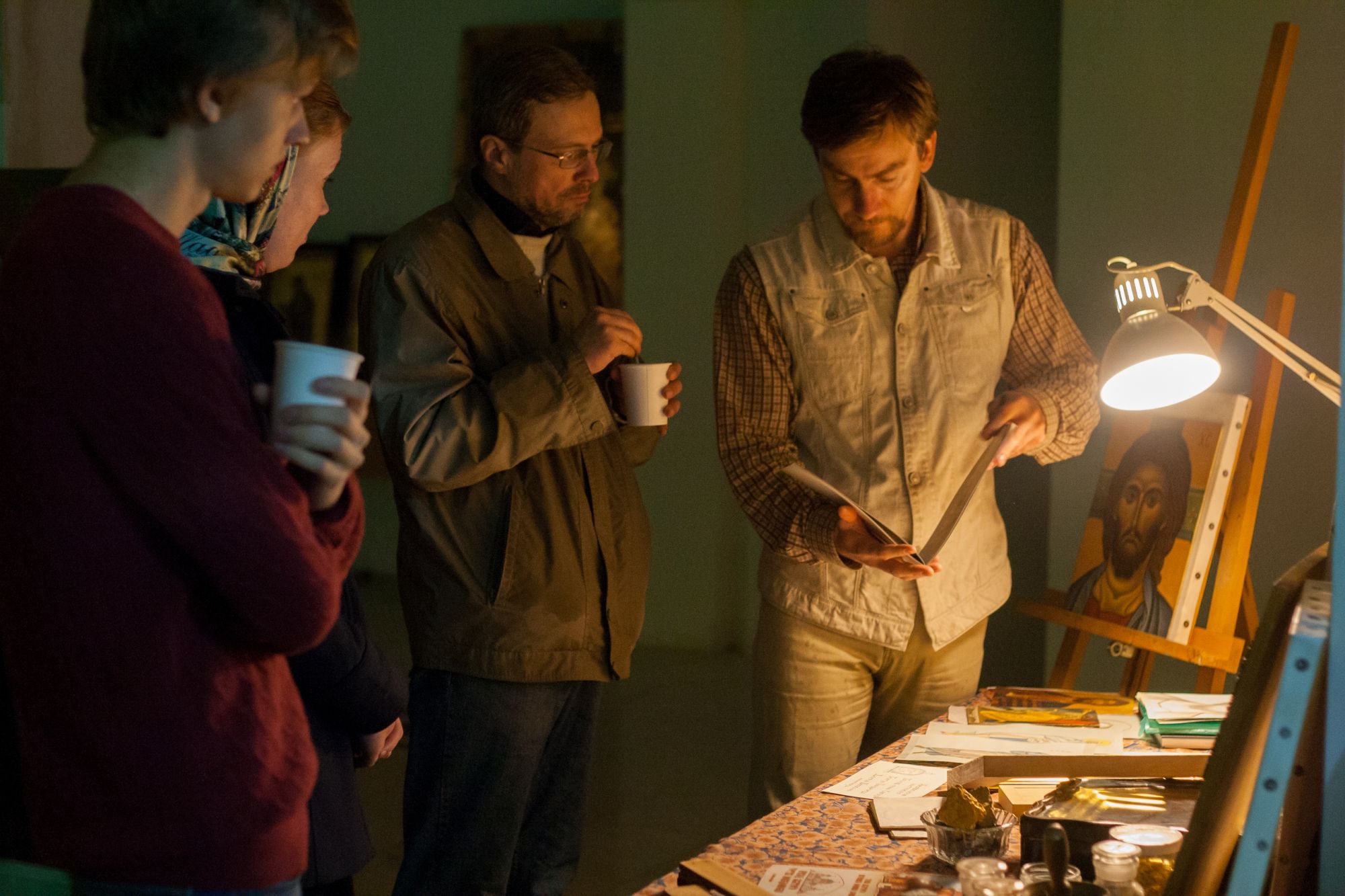В рамках Вечера состоялась лекция Дмитрия Коляды об основах церковного пения. Дмитрий рассказал об истории, традициях церковного пения, критериях, которым должен соответствовать певчий церковного хора, сравнил светскую и церковную музыку. Борис и Анастасия рассказали о процессе лепки и обжига глины, превращения ее в керамику.
