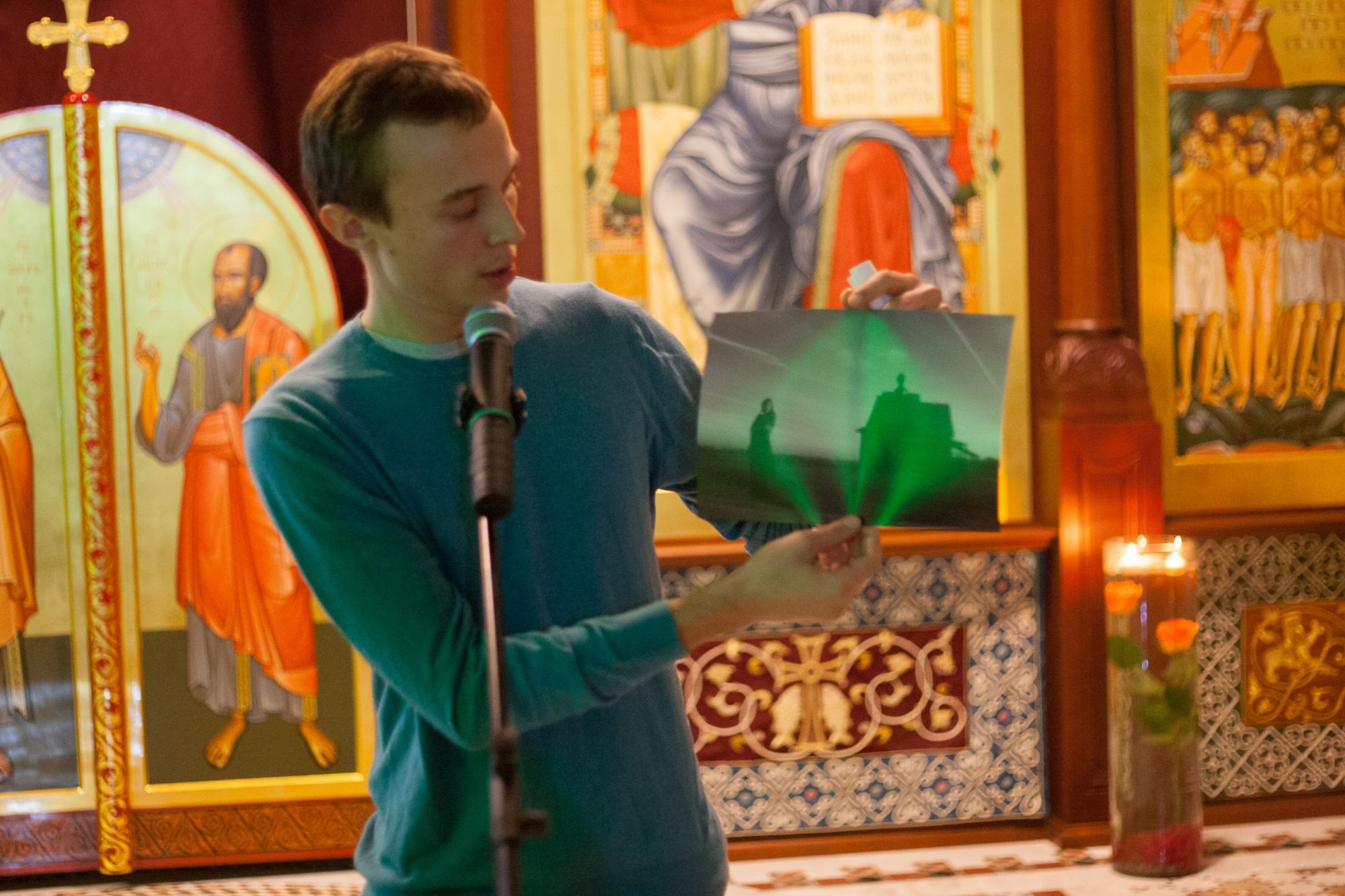 Профессиональный фотограф и видеограф Георгий Обухов прочитал интересную для многих любителей лекцию «Фотография как метод. Поиск в эксперименте. Фотолаборатория». За несколько дней до начала Вечера искусств был объявлен фотоконкурс. Фотография сегодня — пожалуй, одно из самых доступных искусств. Стать немного фотографом может каждый, у кого есть телефон с камерой — достаточно лишь суметь разглядеть красоту в повседневности и запечатлеть её. Не слишком долго думая по поводу темы фотоконкурса, организаторы решили обратиться к Евхаристии. Сердцевина этого главного таинства Церкви — благодарение. Вместе с хлебом и вином мы символически приносим Богу весь мир, дарованный нам и благодарим о всём, что имеем в нём. Теме благодарения и был посвящён фотоконкурс. Все те, у кого оказались фотографии (сделанные собственноручно), на которых отображена красота Божьего мира и творения, красота, о которой хочется поблагодарить, приняли участие в конкурсе.