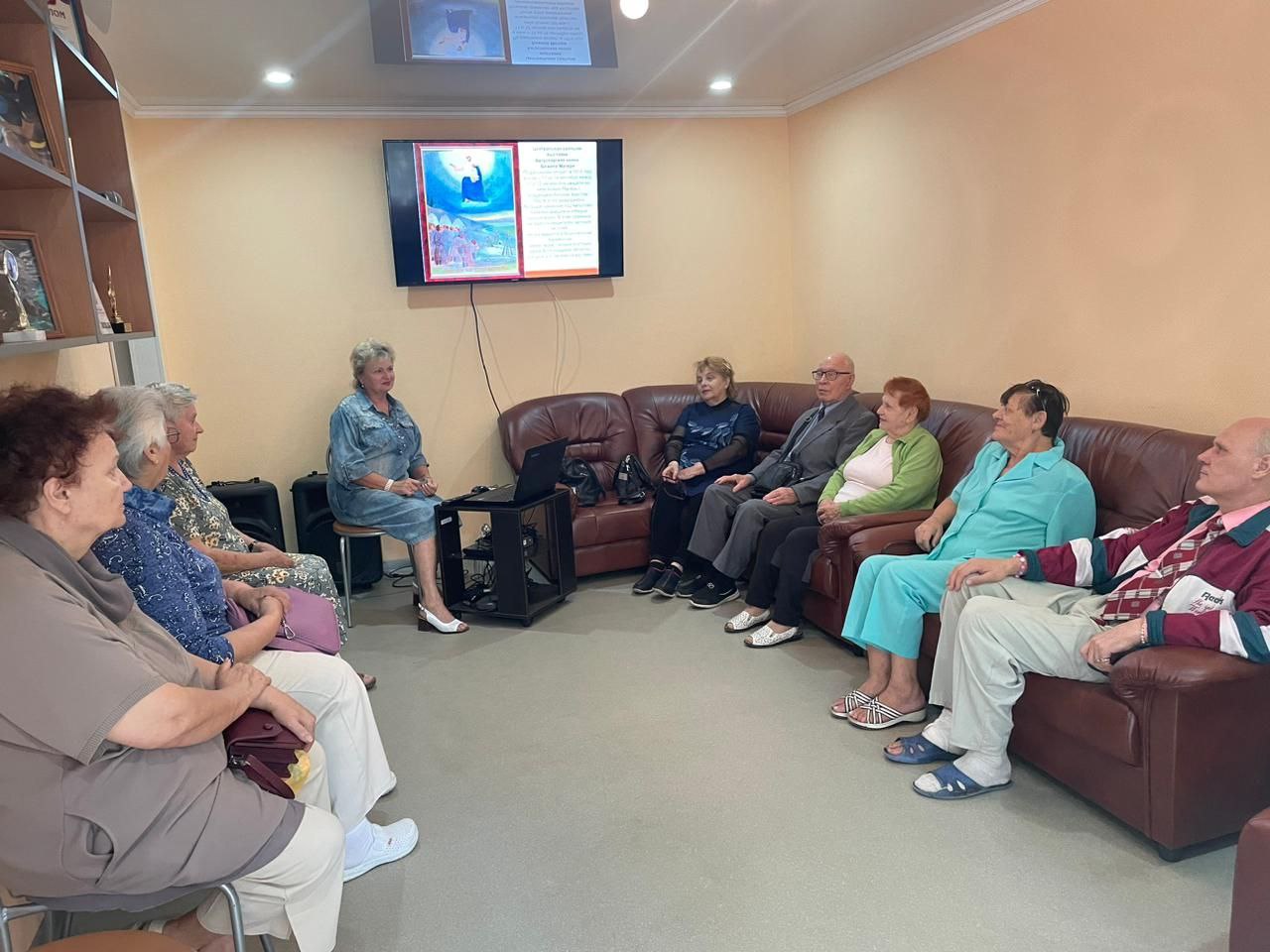 21 сентября, в день празднования Рождества Пресвятой Богородицы, состоялась встреча с пенсионерами клуба «Оптимист» Центра социального обслуживания населения Советского района. Валентина Кижикина рассказала об истории праздника, про чудо Архангела Михаила в Хонех, а также о предстоящем престольном празднике Воскресенского войскового собора — память обновления храма Воскресения Христова в Иерусалиме, Воскресение слову́щее.