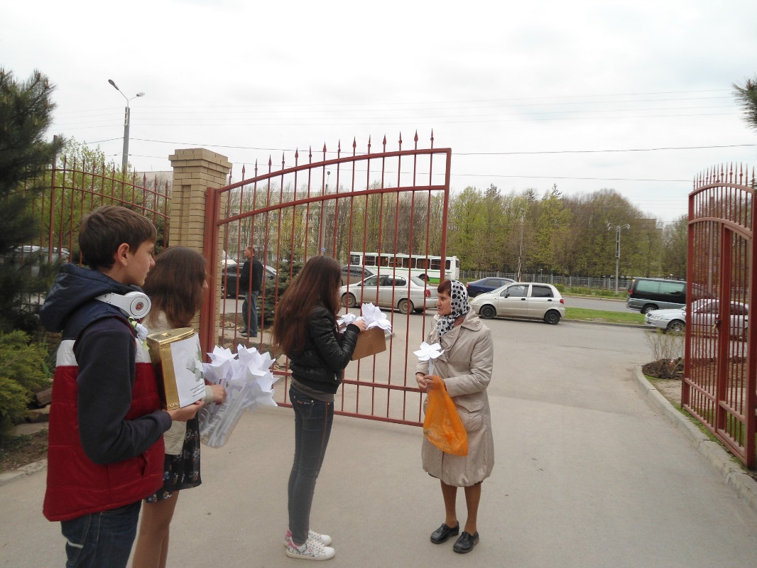 Белые бумажные цветы были изготовлены детьми приходской воскресной школы, общеобразовательной школы № 112, при поддержке мастериц кружка "Традиционная тряпичная кукла".