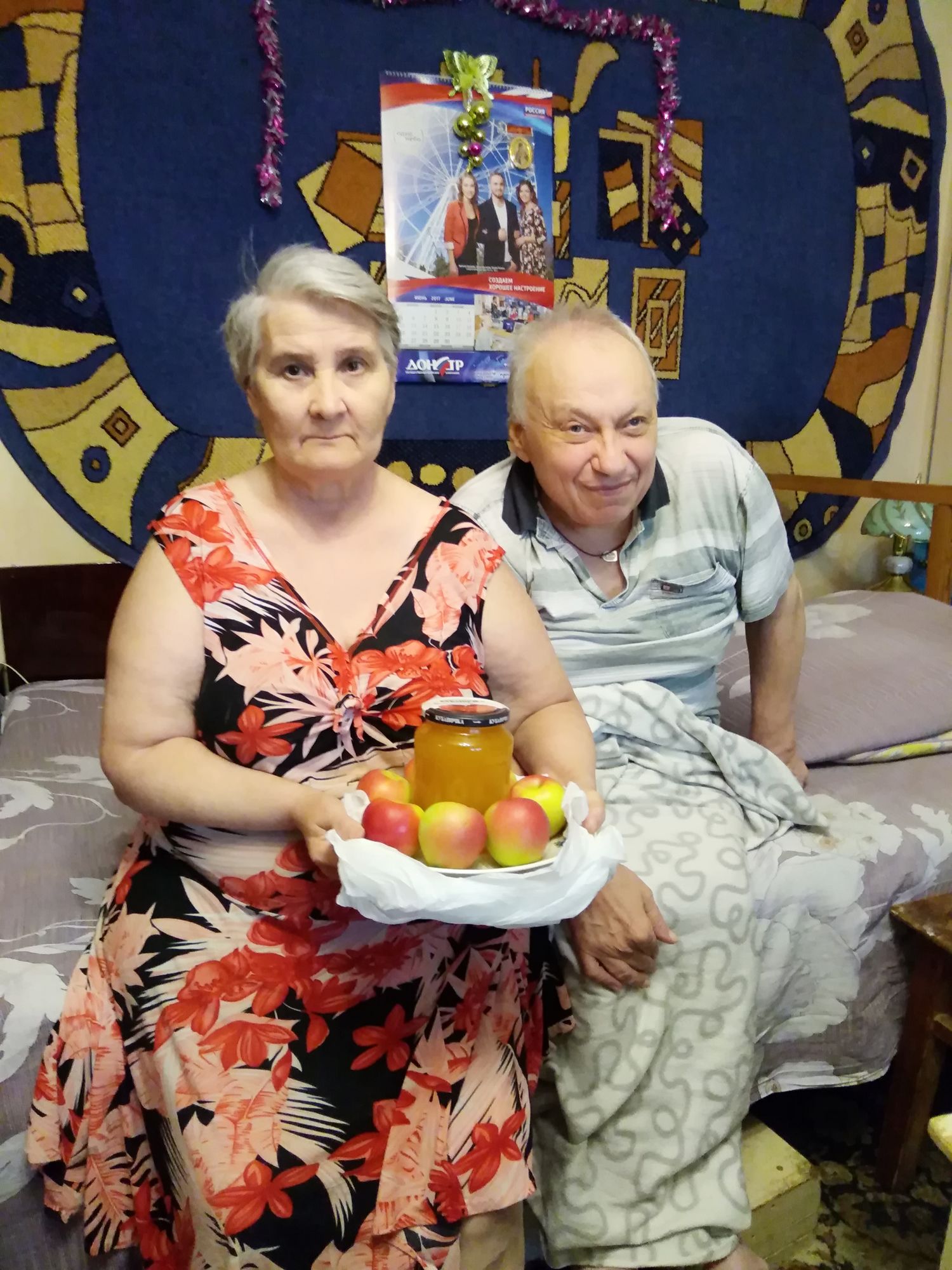 В этот же день мы посетили Евгения Грибанова, у которого накануне был день рождения. Ему подарили фруктовый набор и оказали финансовую помощь.