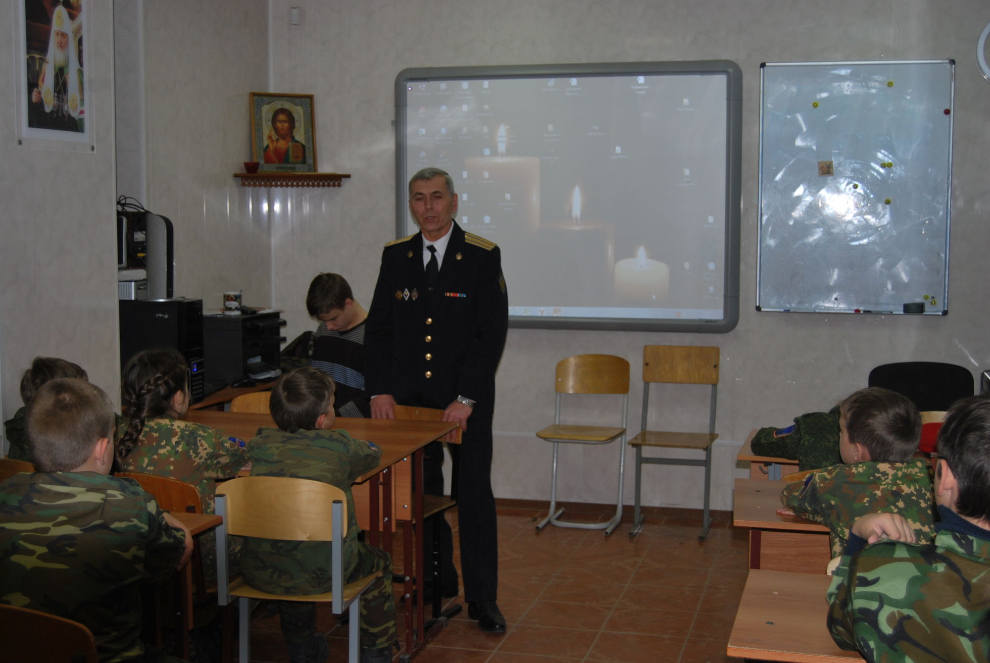 22 декабря 2019 года в рамках проведения «Урока мужества» по начальной военной подготовке детей и молодежи к службе в Российской армии на общем построении были вручены благодарственные письма некоторым юнармейцам за активную военно-патриотическую работу от имени начальника штаба юнармии Ростовской области Карасева Игоря Викторовича. В этот же день состоялась встреча юных защитников Отечества с ветераном Ракетных войск стратегического назначения полковником Момот Геннадием Владимировичем, и ветераном Федеральной службы безопасности подполковником Помазановым Сергеем Васильевичем.