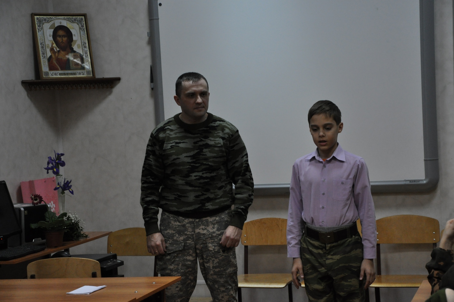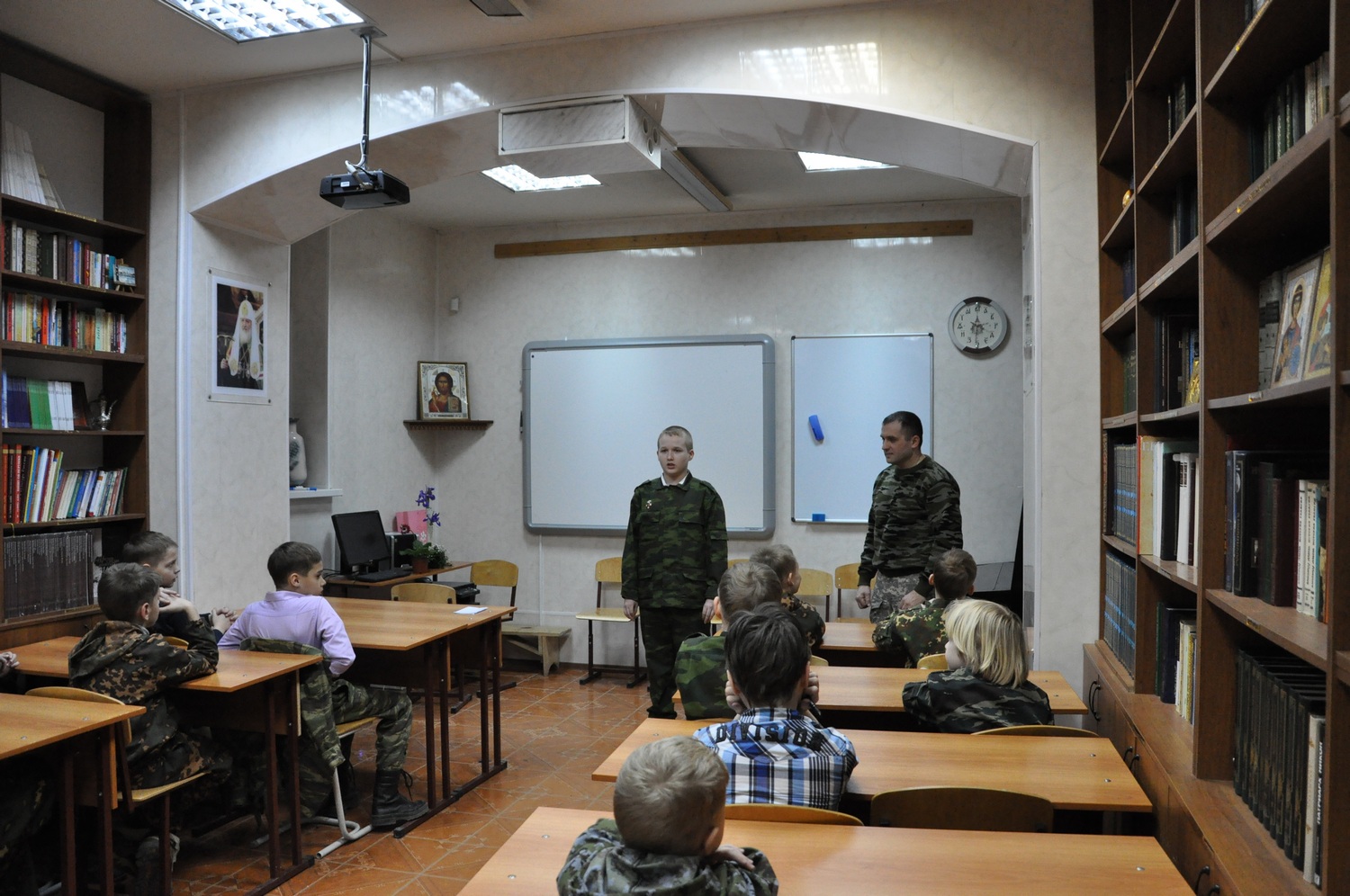 22 февраля 2015 года в приходской воскресной школе прошел урок мужества, посвященный дню Защитника Отечества. Гостями урока были действующие военнослужащие Министерства Обороны Российской Федерации, ветераны боевых действий, родители учащихся. Опытом своей боевой службы с юными защитниками Отечества поделился Погодин Владимир Владимирович, отец Глеба Погодина, семилетнего воспитанника нашей воскресной школы. Дети прочли стихи, посвящённые военной истории России.