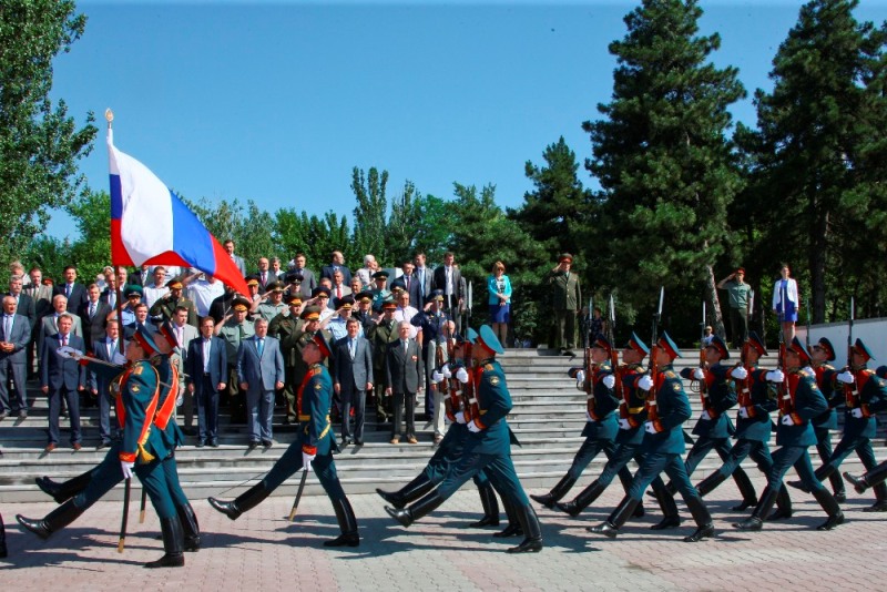 Церемония состоялась в сквере имени Фрунзе (пл. К.Маркса). В ней приняли участие губернатор Ростовской области, заместители губернатора, мэр г. Ростова-на-Дону, командующий войсками ЮВО, представители Законодательного Собрания области, ветераны Великой Отечественной войны.