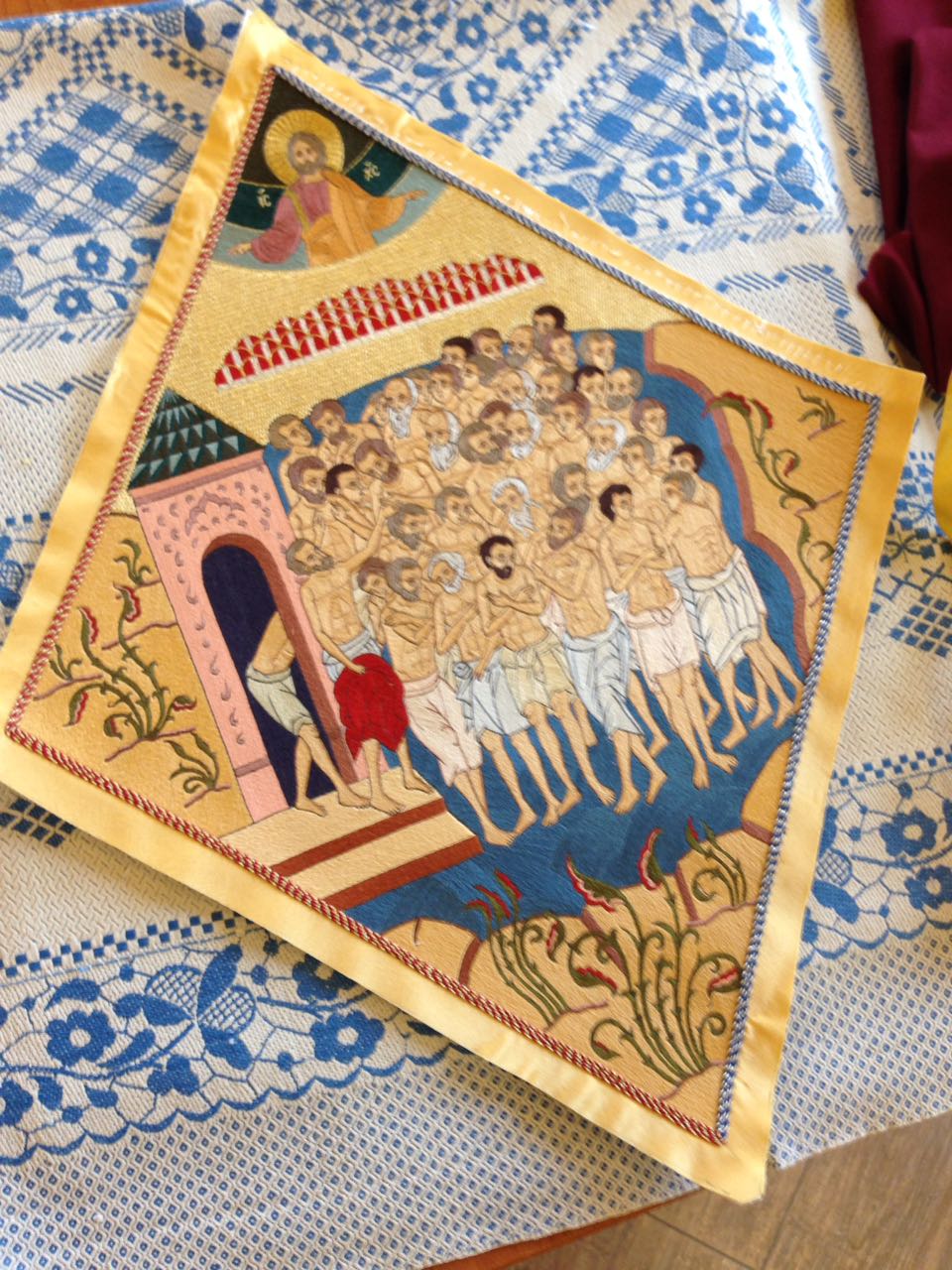 Поздравляем Всех с днем памяти 40 Севастийских мучеников, а также с днем тезоименитства нашего любимого настоятеля. С изображением Севастийских мучеников золотошвейной мастерской была сделана палица, выполненная в технике лицевого шитья. Над прорисью трудился иконописец Владимир