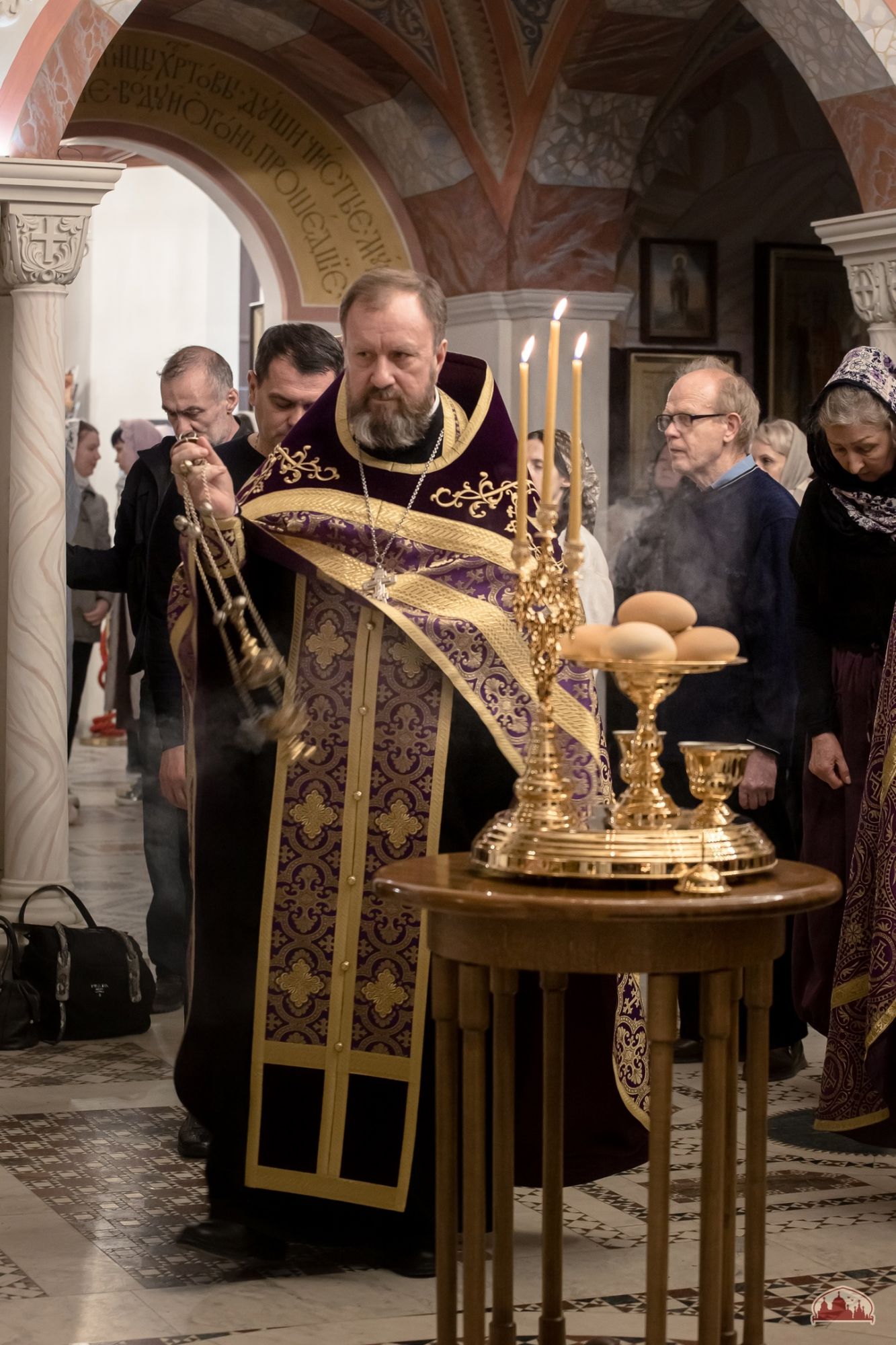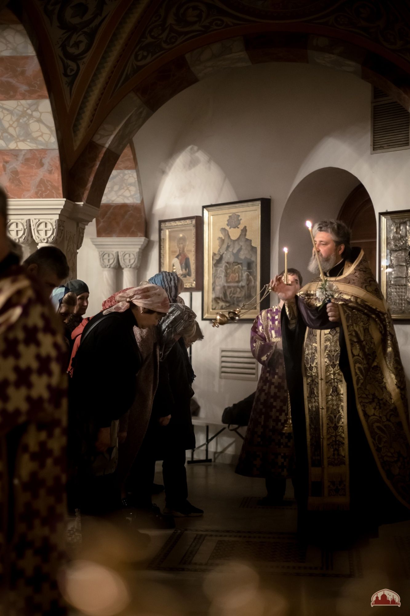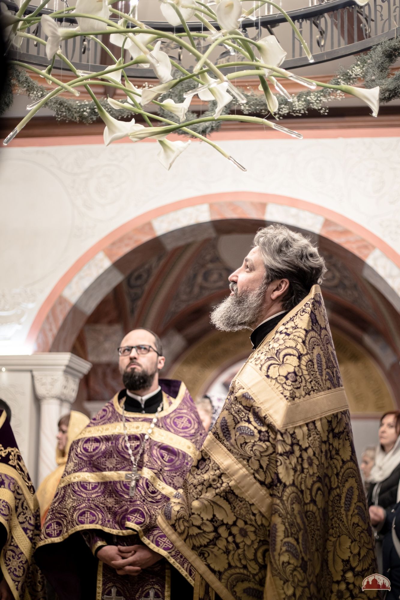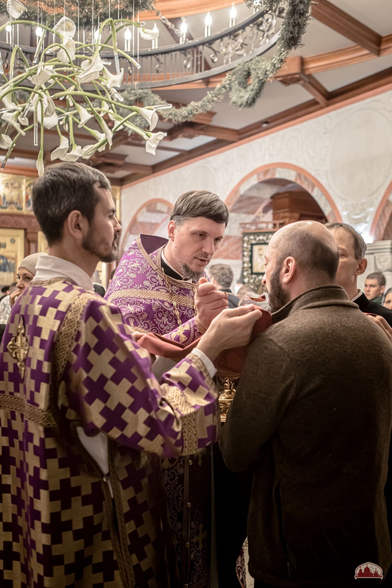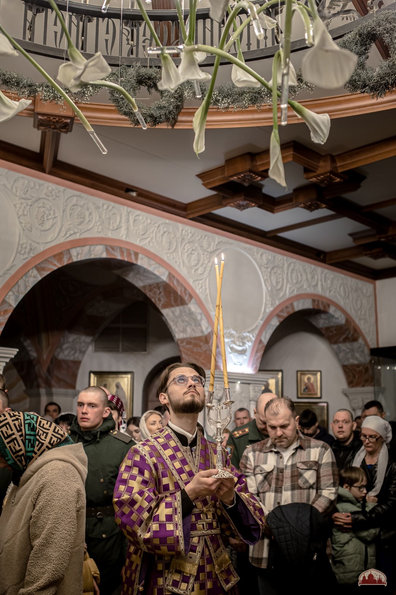 Песнопения богослужения исполнили мужской хор под управлением Ашота Паланджяна и девичий хор под управлением Ксении Волощук. Проповедь перед Святым Причастием произнес клирик храма иерей Алексий Овчинников.