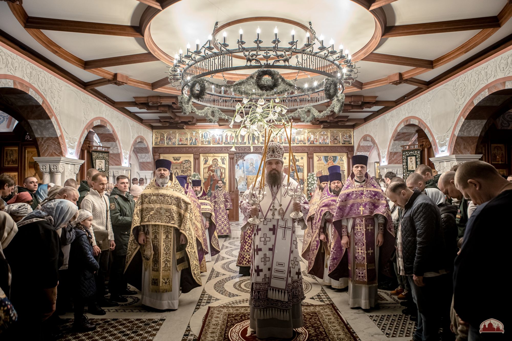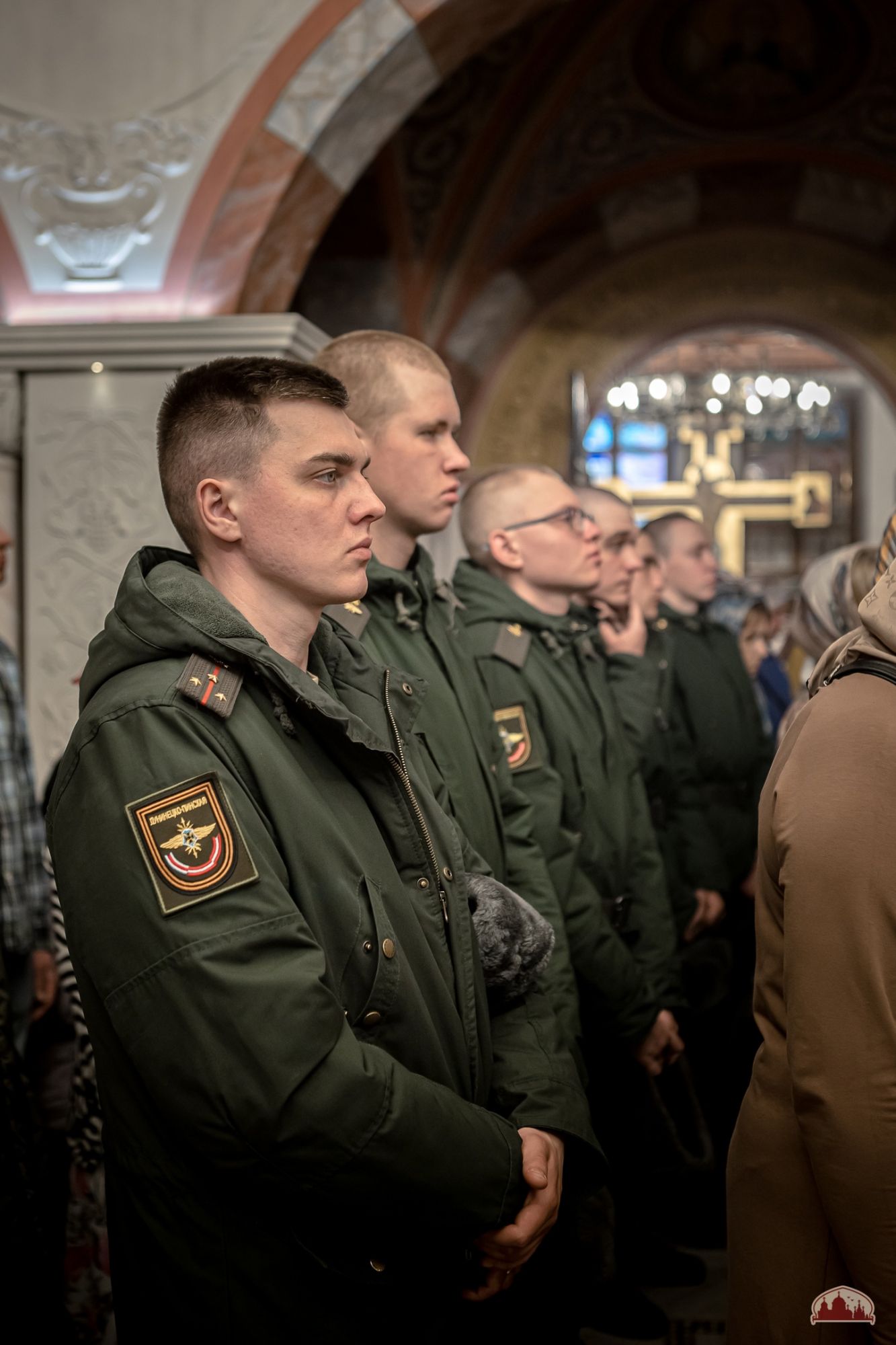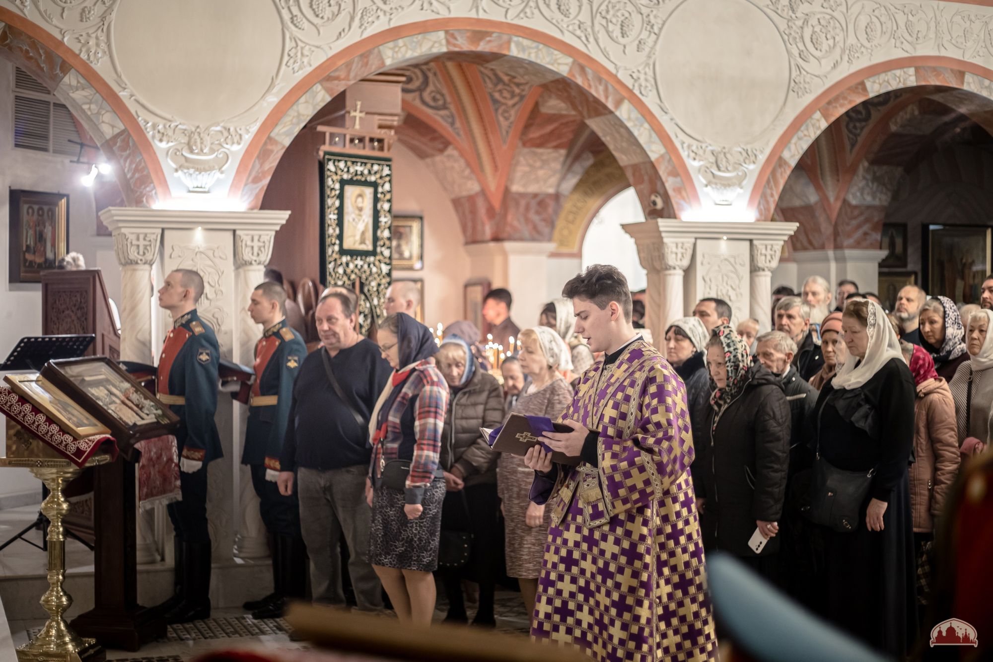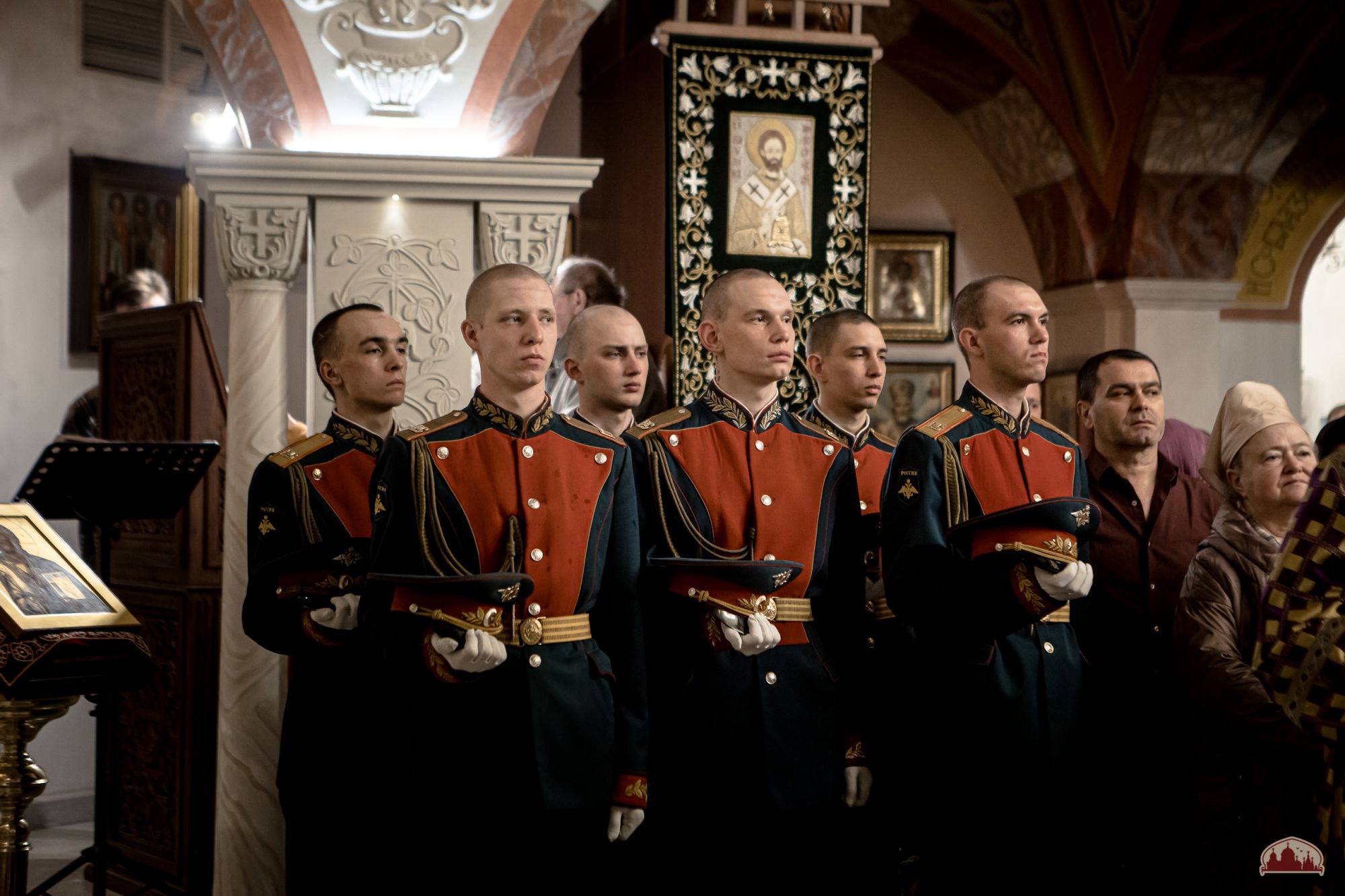 Его Преосвященству сослужили благочинный Западного округа иерей Александр Литвиненко, руководитель Епархиального отдела по взаимодействию с Вооруженными силами и правоохранительными учреждениями, настоятель храма протоиерей Валерий Волощук, руководитель Епархиального отдела по работе с казачеством протоиерей Георгий Сморкалов и клирики благочиния.