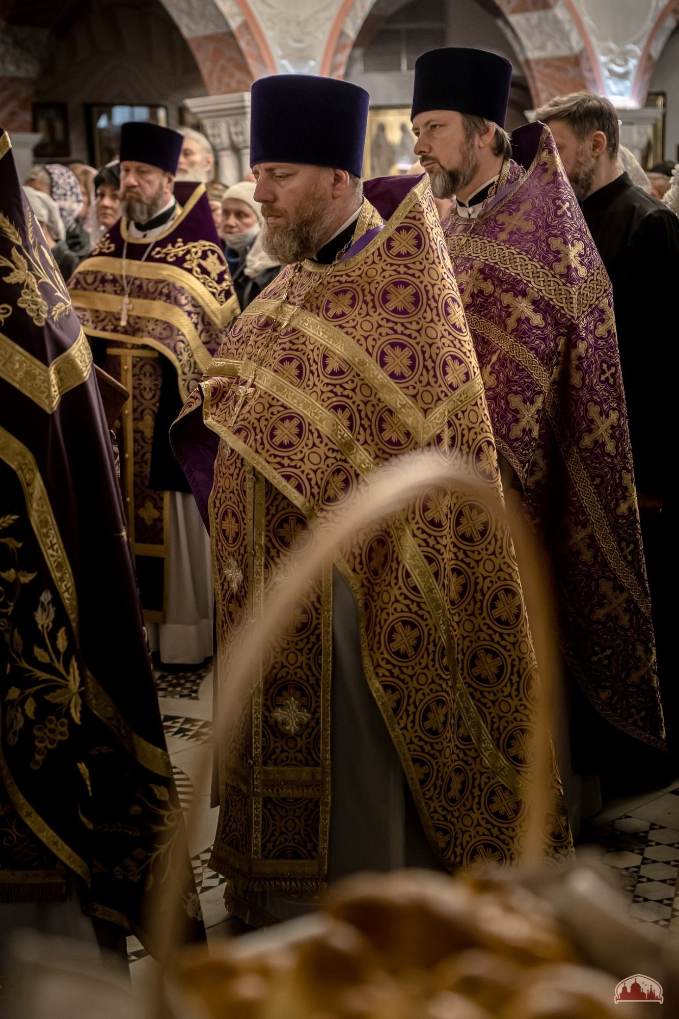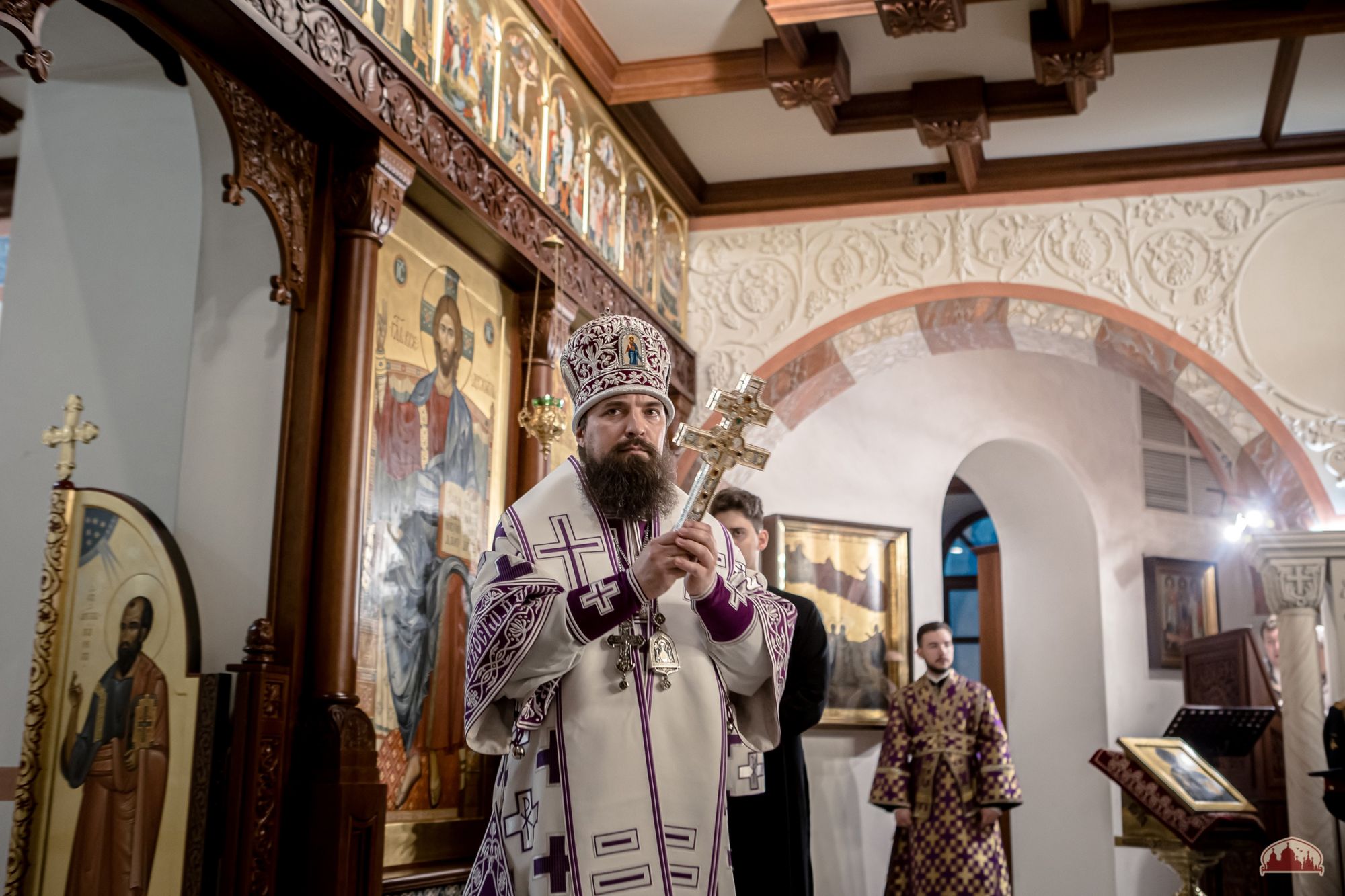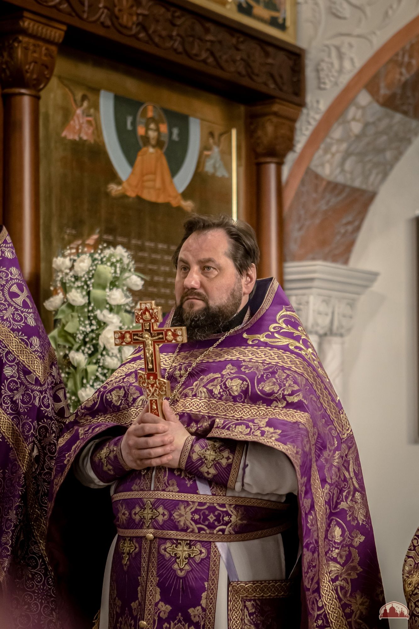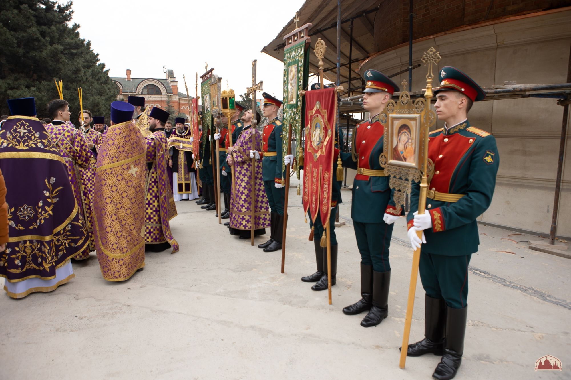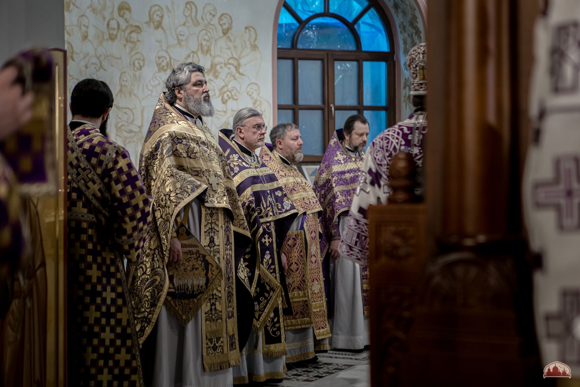 Его Преосвященству сослужили благочинный Западного округа иерей Александр Литвиненко, руководитель Епархиального отдела по взаимодействию с Вооруженными силами и правоохранительными учреждениями, настоятель храма протоиерей Валерий Волощук, руководитель Епархиального отдела по работе с казачеством протоиерей Георгий Сморкалов и клирики благочиния.