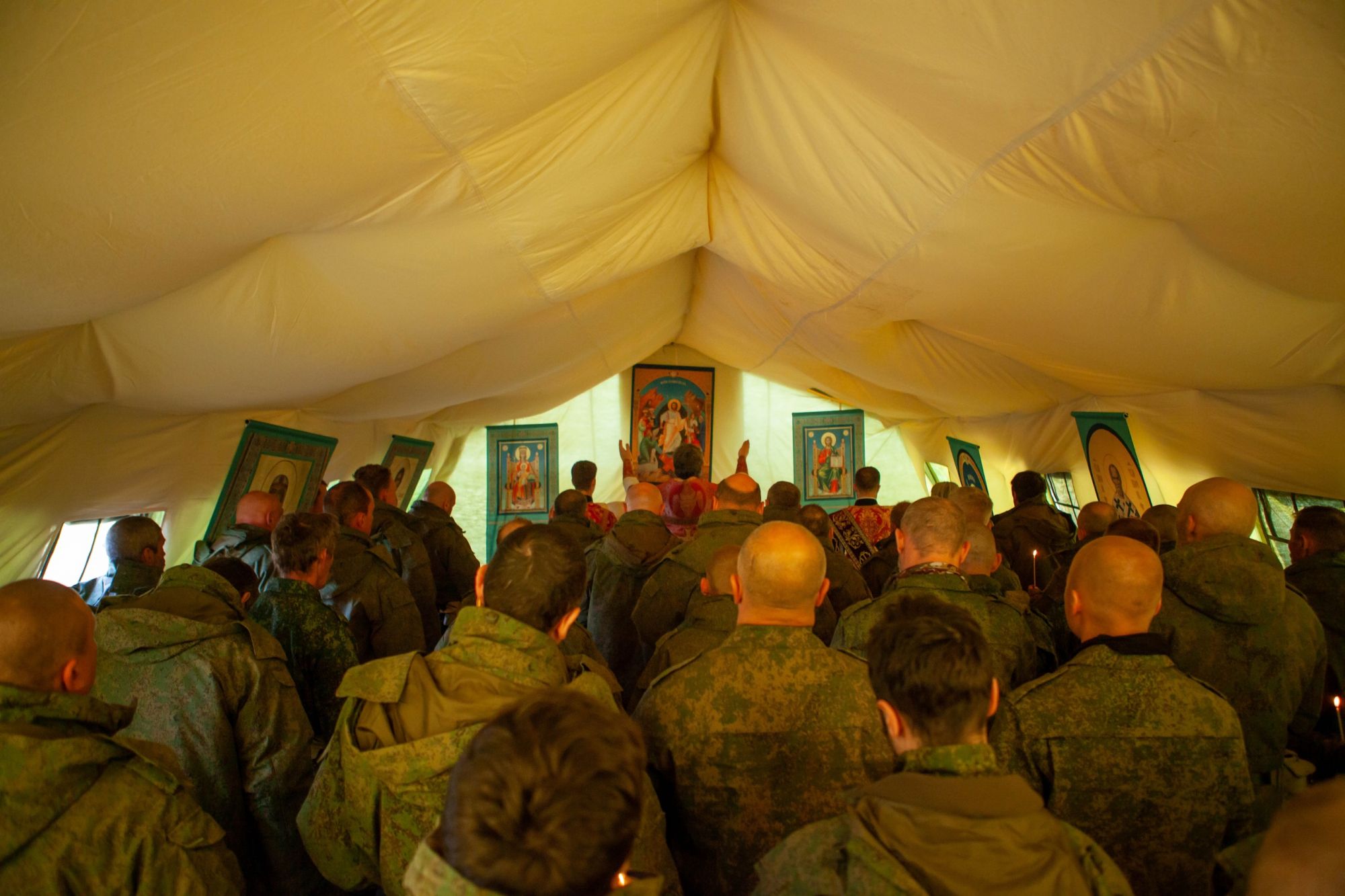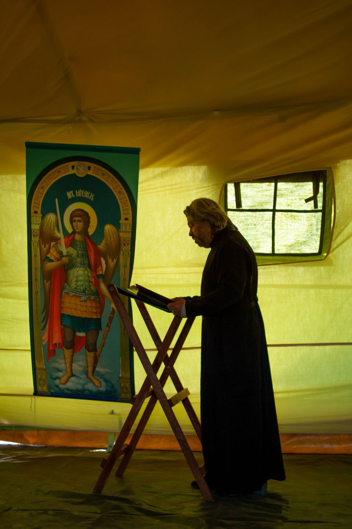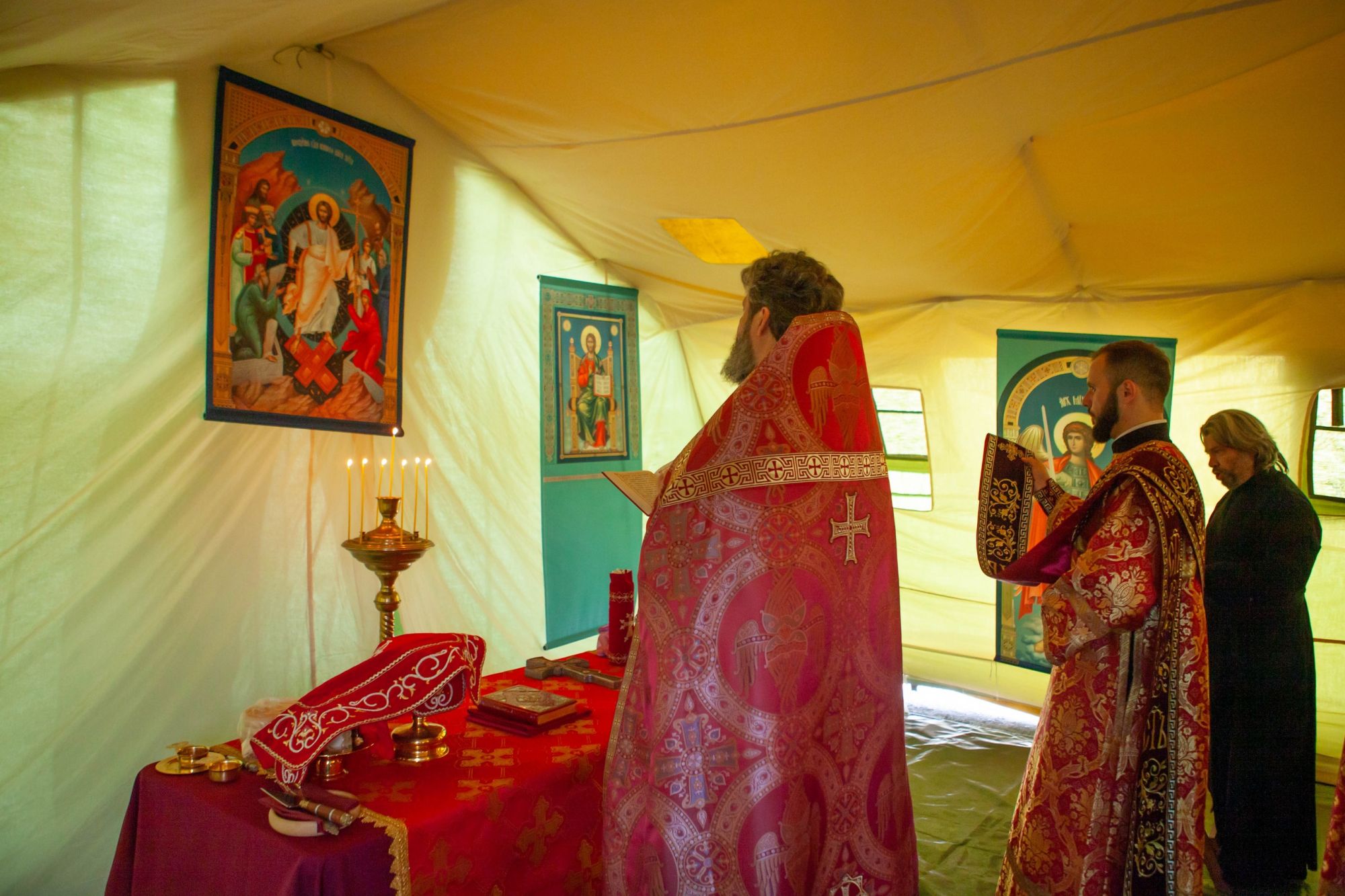 22 мая настоятель Главного храма Южного военного округа протоиерей Валерий Волощук совершил первую Божественную литургию в Михайло-Архангельском военно-полевом храме на полигоне.