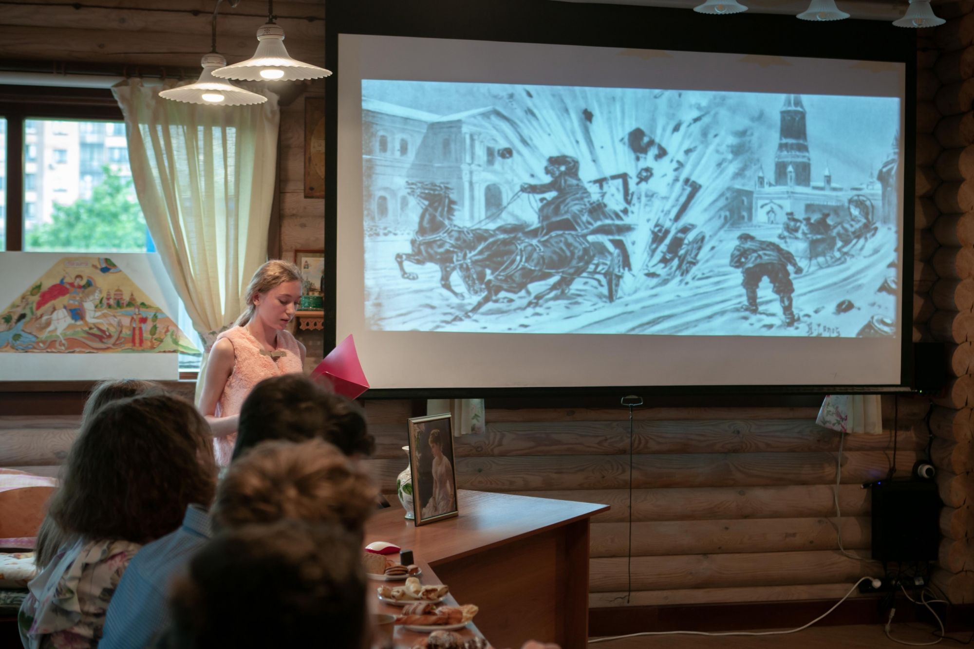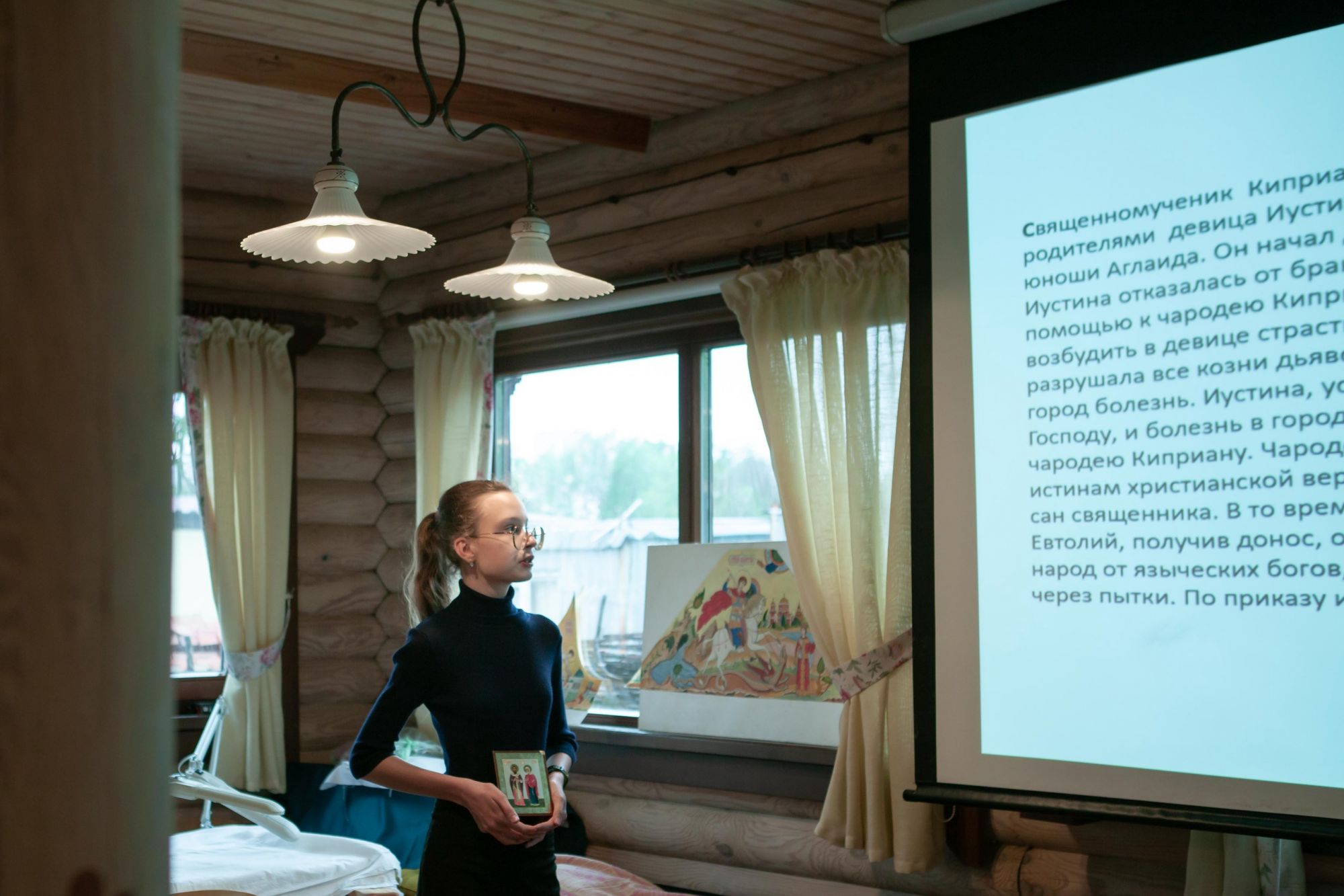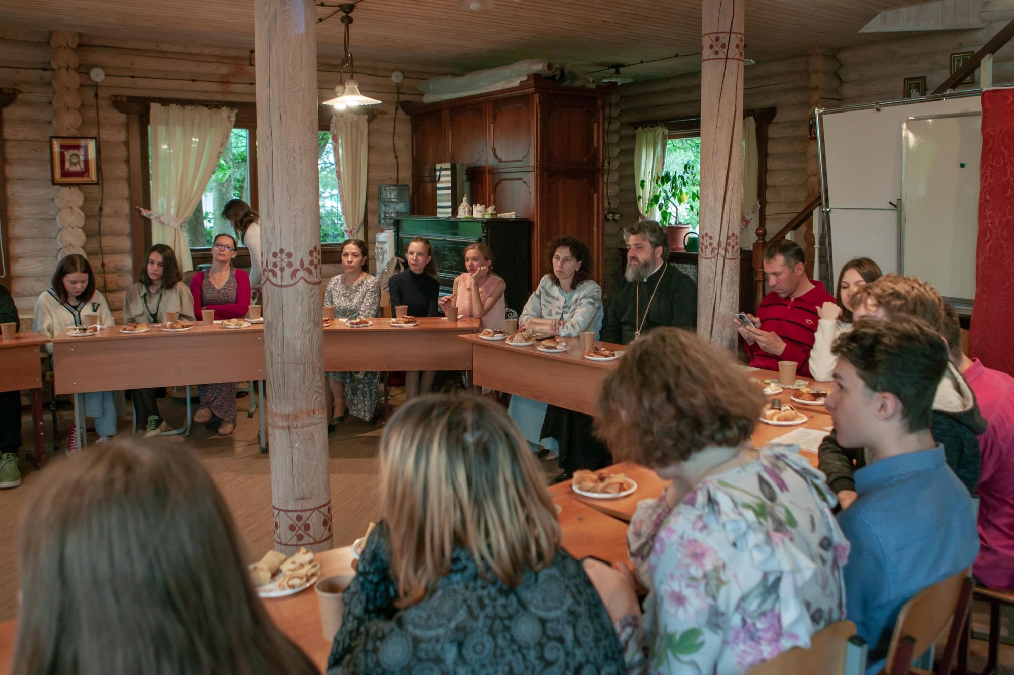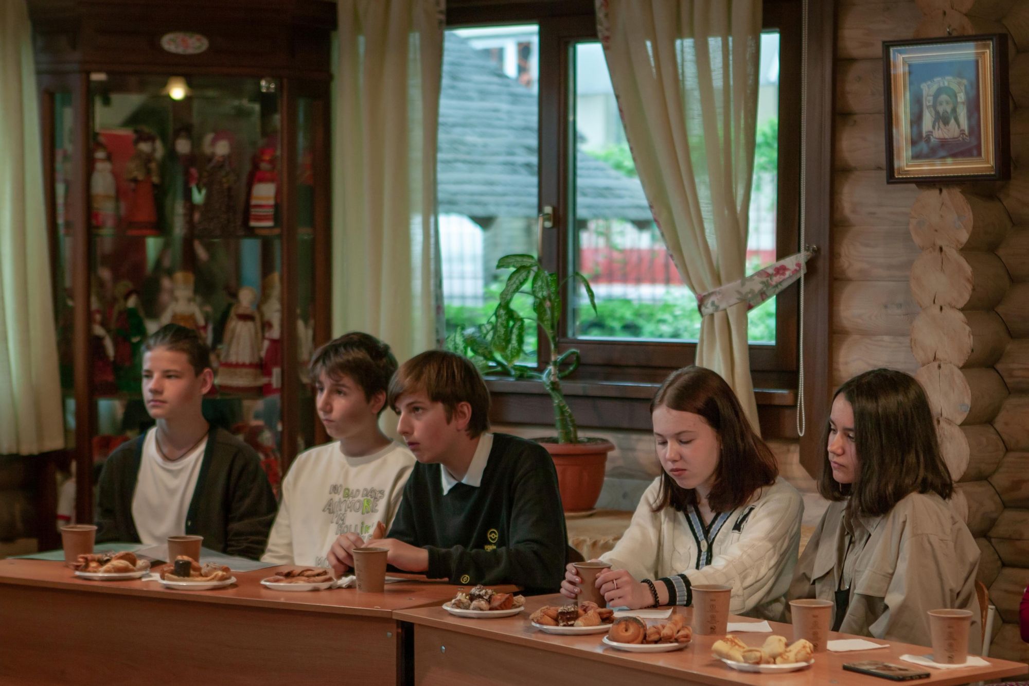 Ребята старшей группы защищали свои выпускные работы перед настоятелем прихода, директором воскресной школы и своими преподавателями. Темы для своих выпускных работ ребята выбрали разные: "Библейский герой, который мне близок", "Святой, который мне близок", "Христианское художественное произведение, которое произвело на меня впечатление". Защита работ проходила в тёплой атмосфере за чаепитием. Отец Валерий и матушка Ксения высоко оценили уровень выступления и поблагодарили ребят за труды.