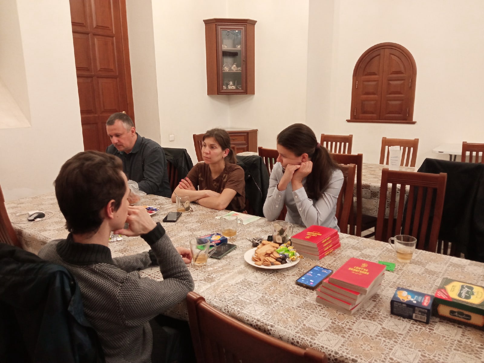 22 мая, в неделю 5-ю по Пасхе и день памяти святителя Николая Чудотворца, встреча библейского кружка впервые прошла в новом формате. Собственно, наш кружок теперь является не библейским, а библейско-богословским – то есть, помимо изучения Евангелия, он предполагает обсуждение вопросов православного вероучения. Первая тема была интересной и непростой – «Чувственное и рациональное богопознание».