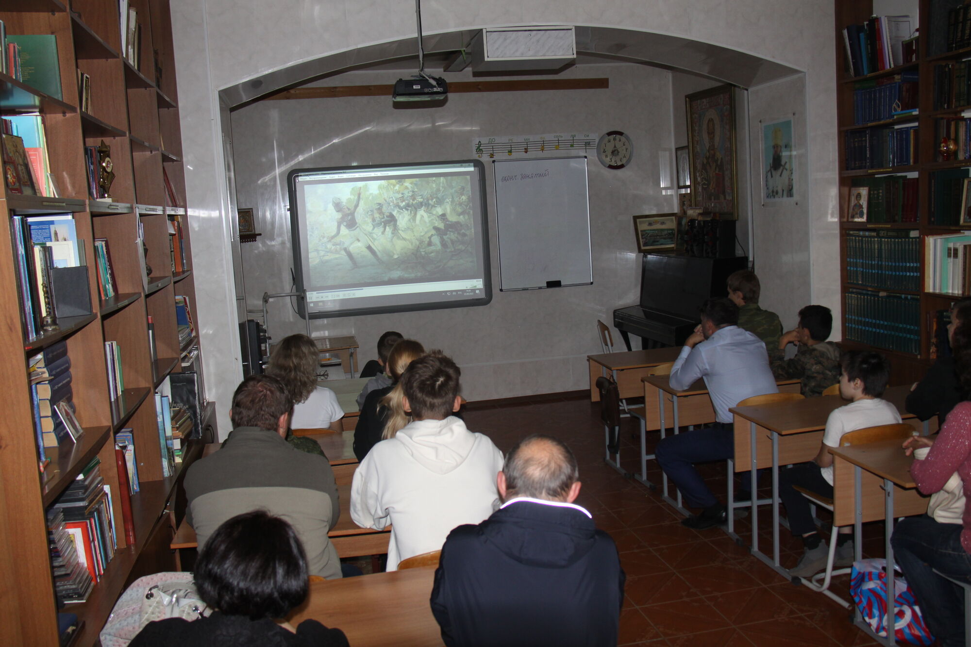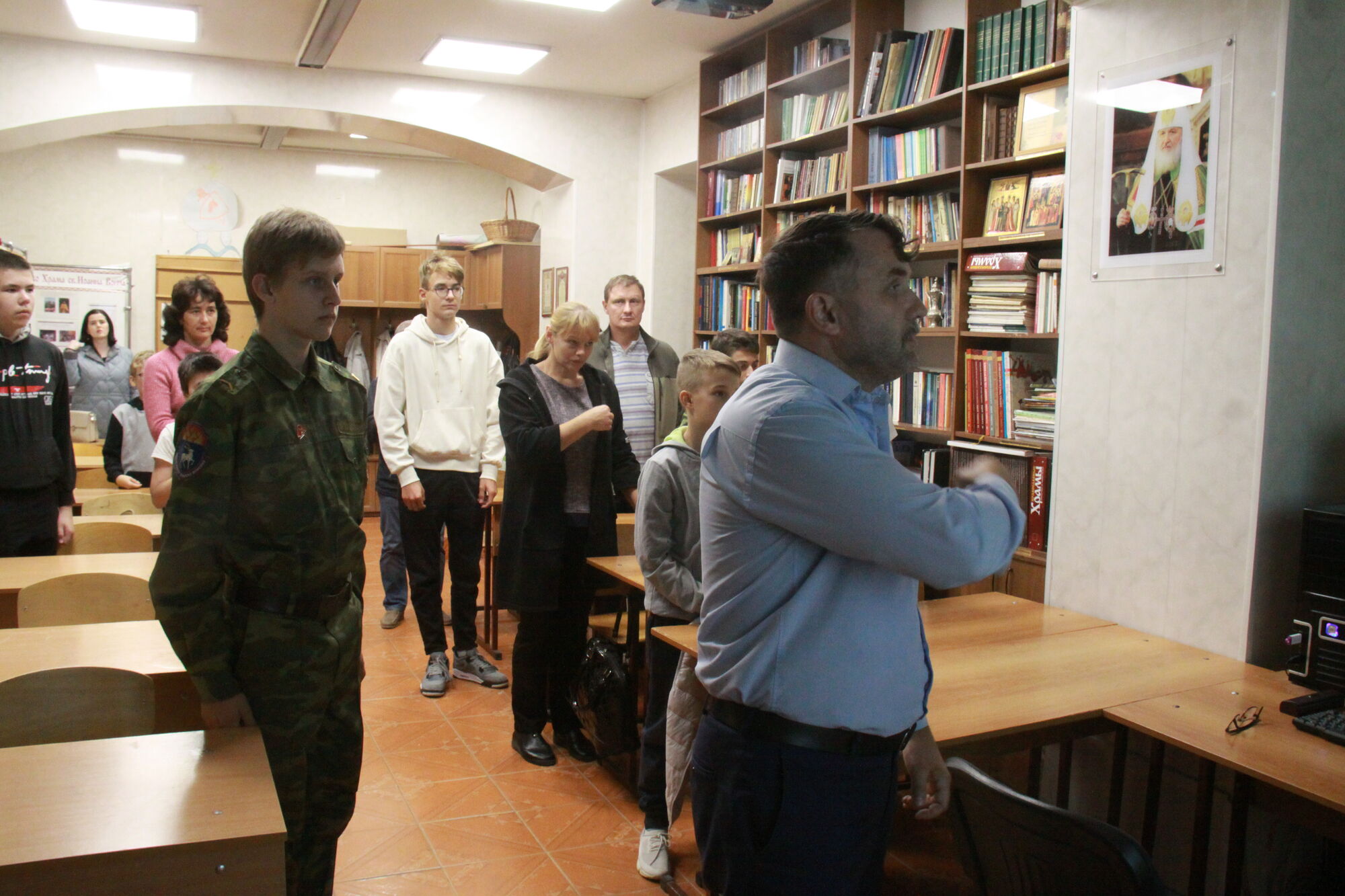 22 сентября 2022 года для учащихся приходской воскресной школы, занимающихся по программе «Уроки мужества», их родителей и прихожан нашего храма был организован урок живой истории, посвященный дням воинской славы России и службе в современной российской армии.