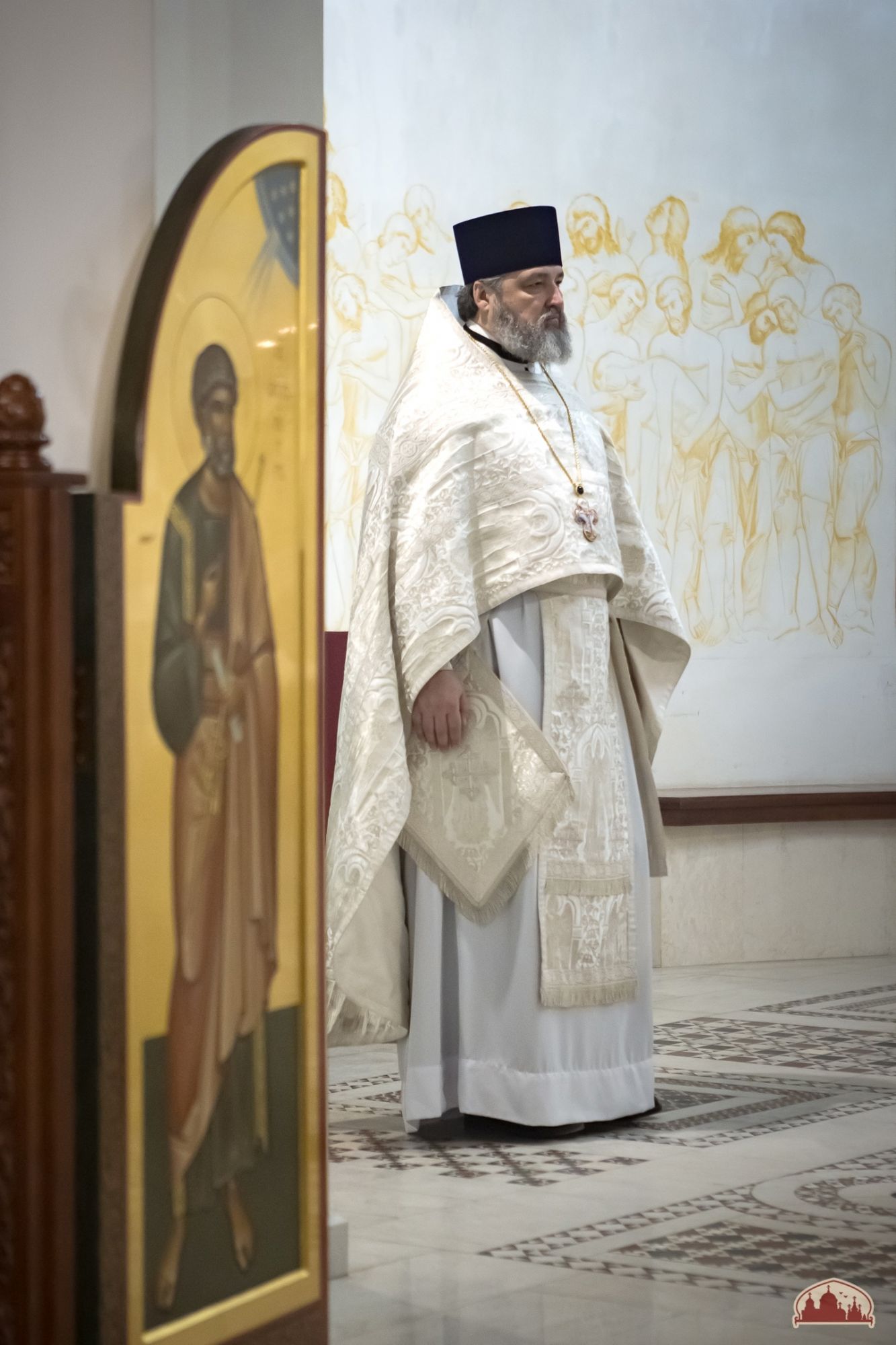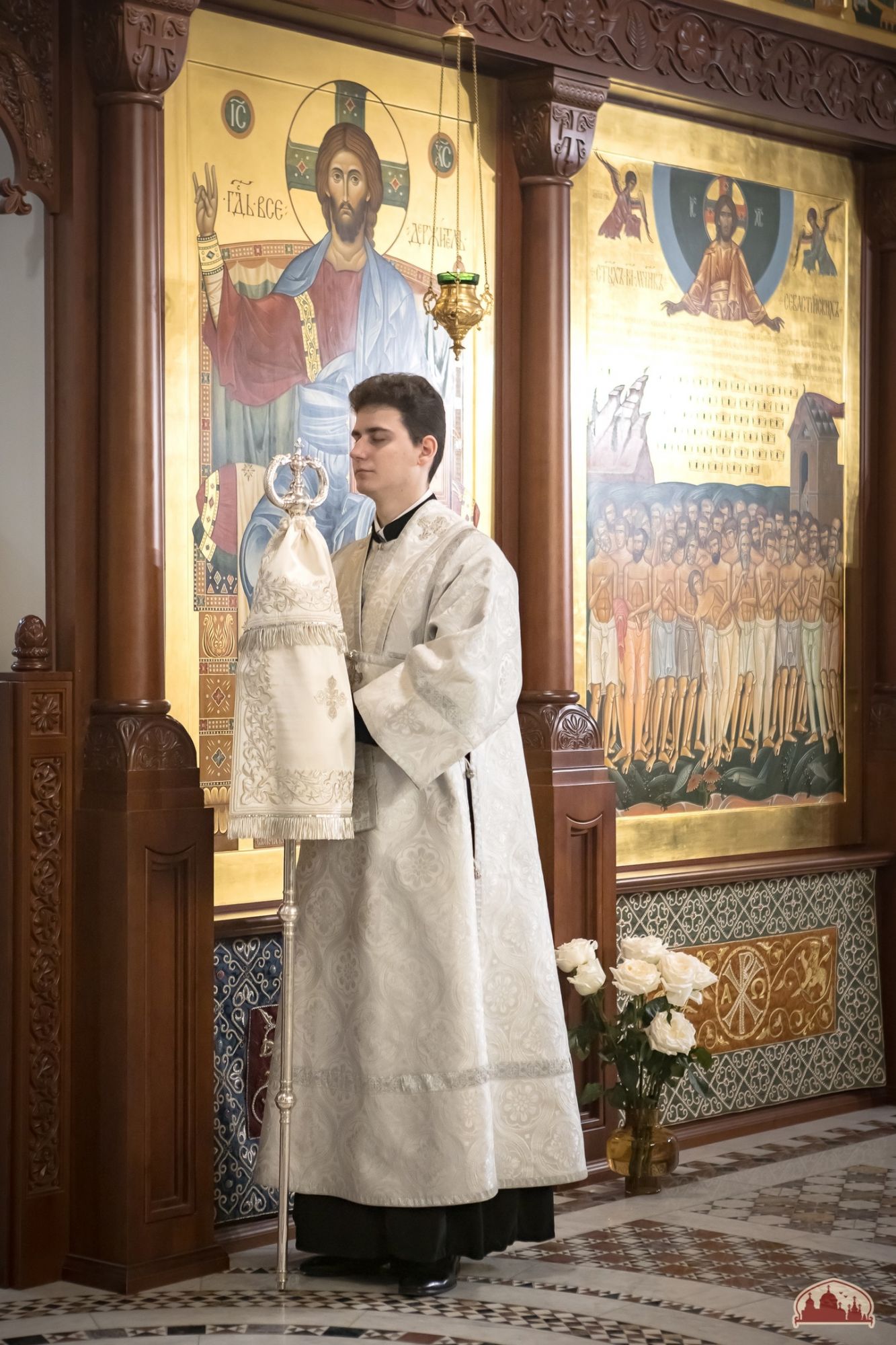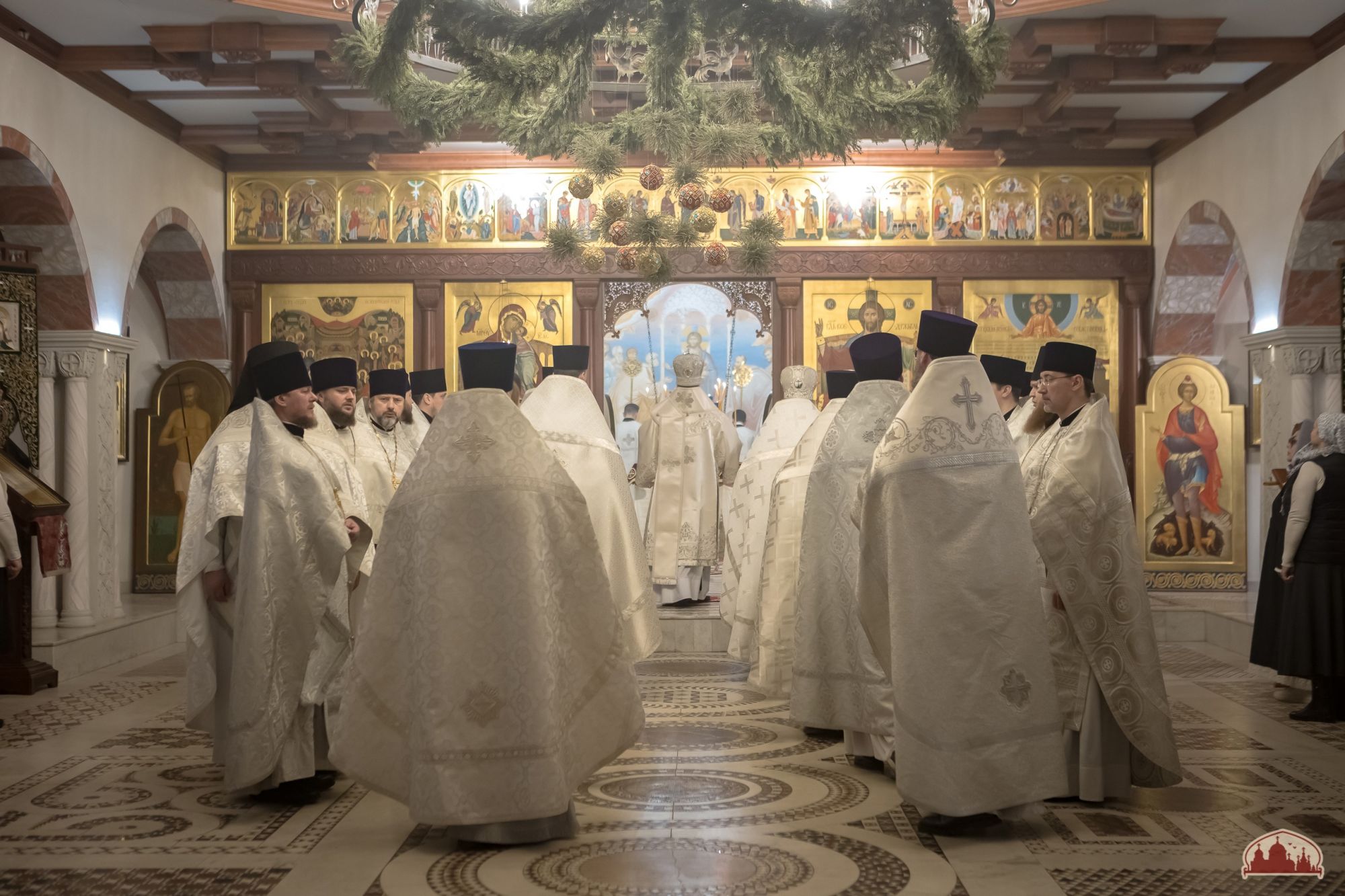 Его Высокопреосвященству сослужили секретарь митрополита Ростовского и Новочеркасского по городу Ростову-на-Дону протоиерей Иоанн Осяк, руководитель Епархиального отдела по взаимодействию с Вооруженными силами и правоохранительными учреждениями, настоятель храма протоиерей Валерий Волощук, члены Епархиального совета, благочинный Западного округа, руководитель информационного отдела Ростовской-на-Дону епархии, благочинный Центрального округа, наместник Донского Старочеркасского Ефремовского мужского монастыря, древлехранитель Ростовской-на-Дону епархии, благочинный Неклиновского округа, личный секретарь Главы Донской митрополии, духовенство епархии.